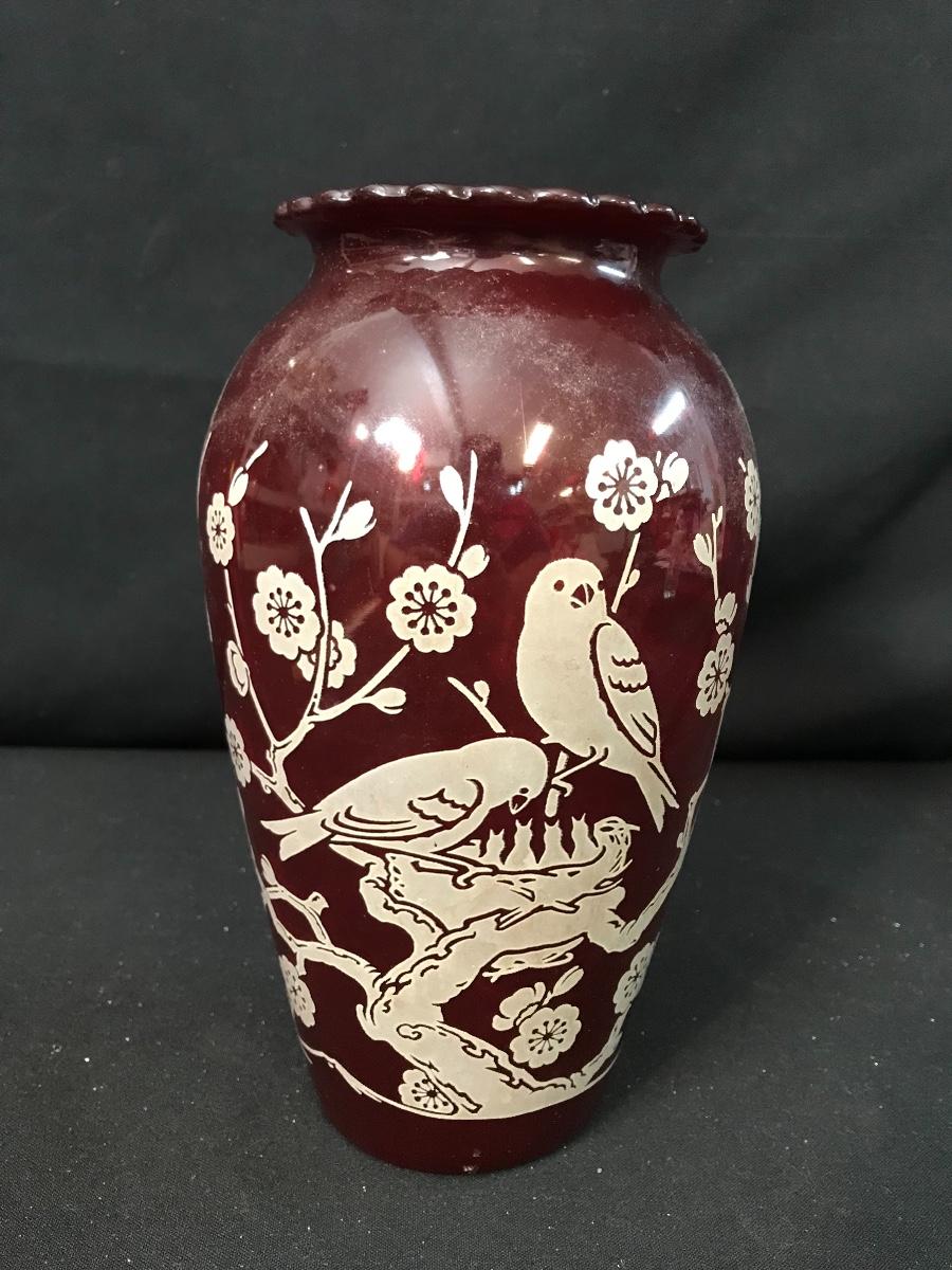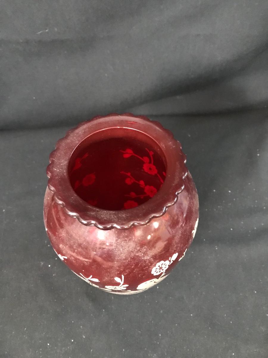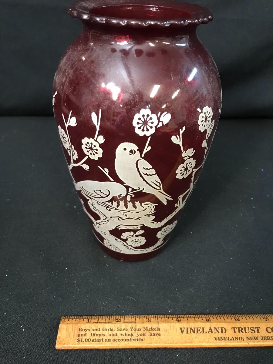 Vintage Ruby Red Glass Vase. Please see all pictures as they are the best representation of the items. The pictures show condition, measurements if taken, and what is included in the lot. Due to the large amount that we photograph and the time frame, we are not always able to take measurements. All items unless noted, are pre-owned and have been used. If you purchased furniture, you must bring help. We do not allow one person to carry large furniture out on their own. Bring help, tools and a truck for the safety of our client’s homes, and your personal safety. Company policy. Thank you.