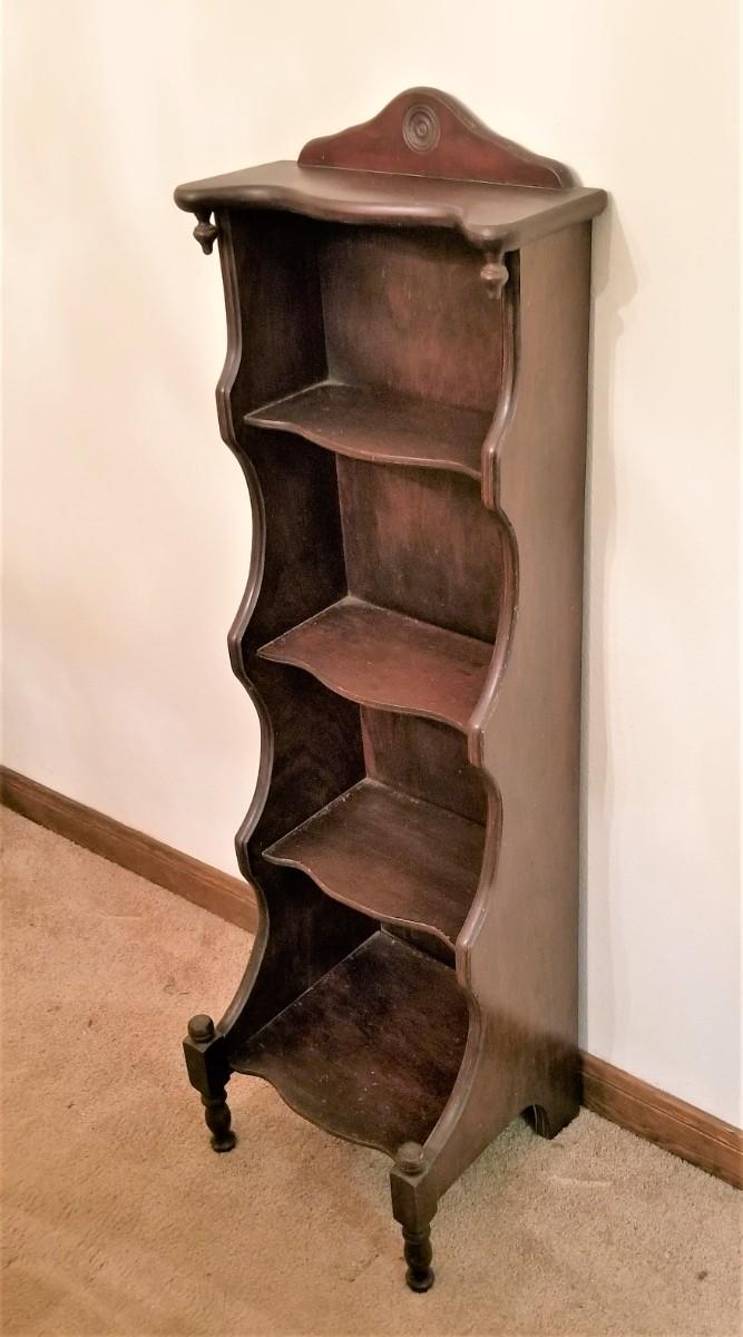 This sweet little bookcase/whatnot shelf likely dates from the 1940's - 4 shelves. 13.5" across, 45" tall, 12.5" deep. Good condition.