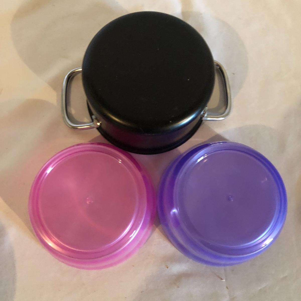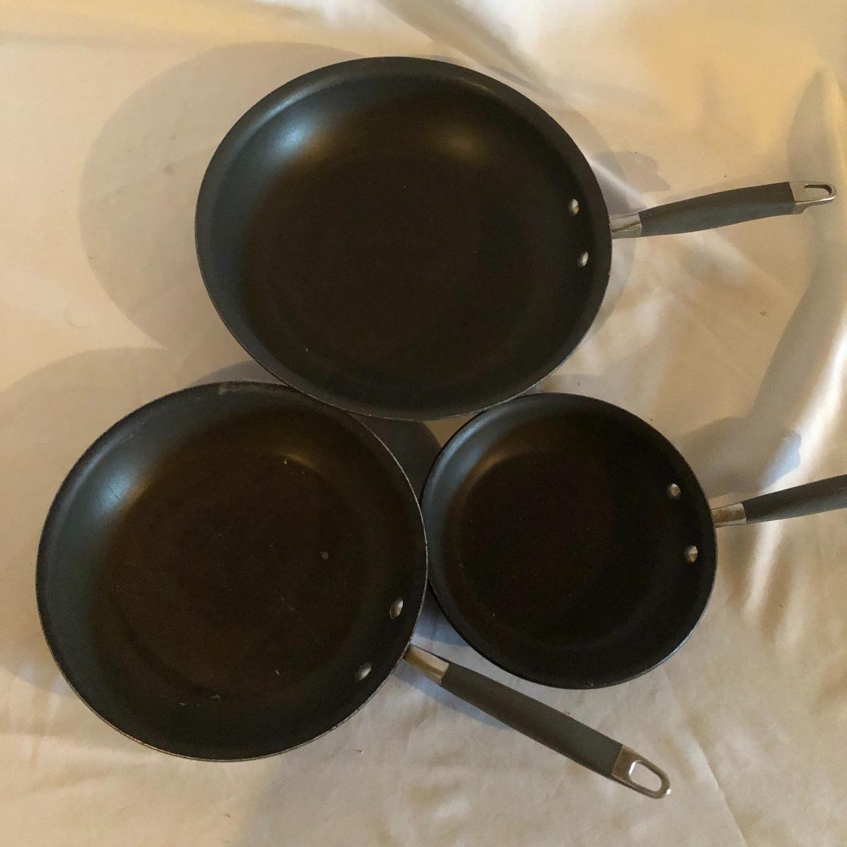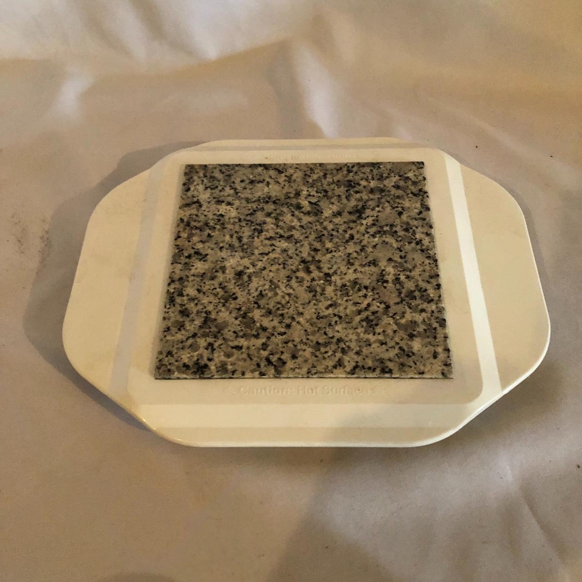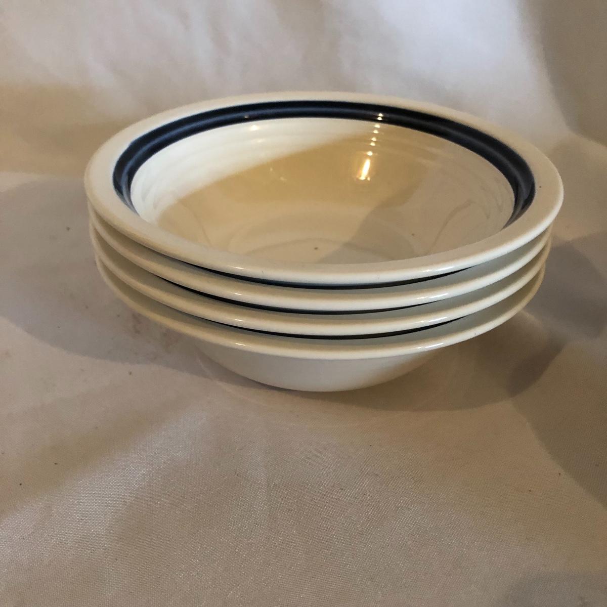 This is a great set for your college student or for a small apartment. Lot includes Country charm set with two cups, small plates and bowls and four dinner plates, bowls and saucers. Also includes four glasses, warming stone, salt and pepper shakers, wok type pan, colander, three frying pans and more. Largest frying pan measures 13”D.