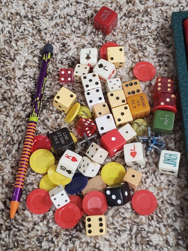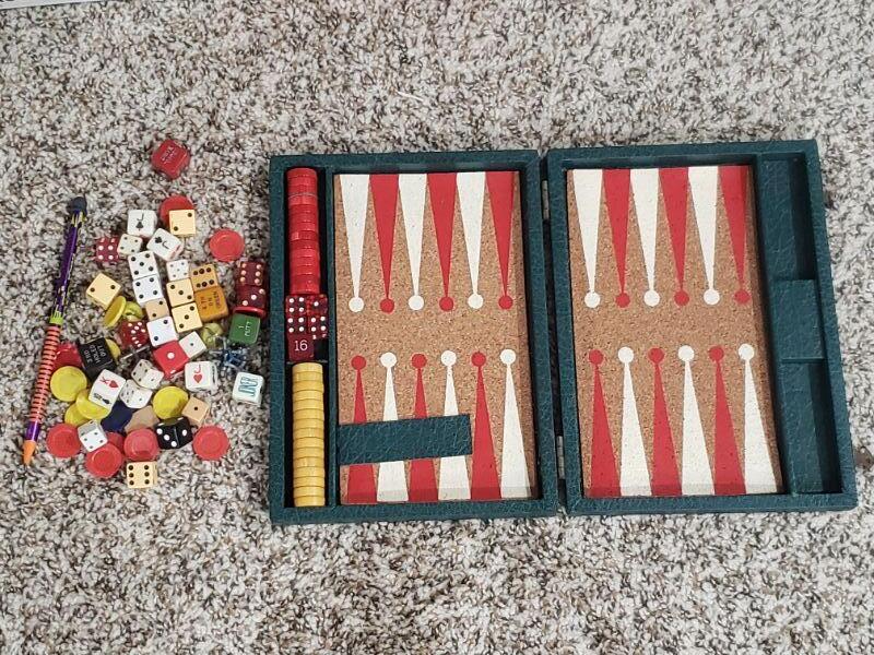 Lot 286: Backgammon & Assorted Game Pieces & Dice