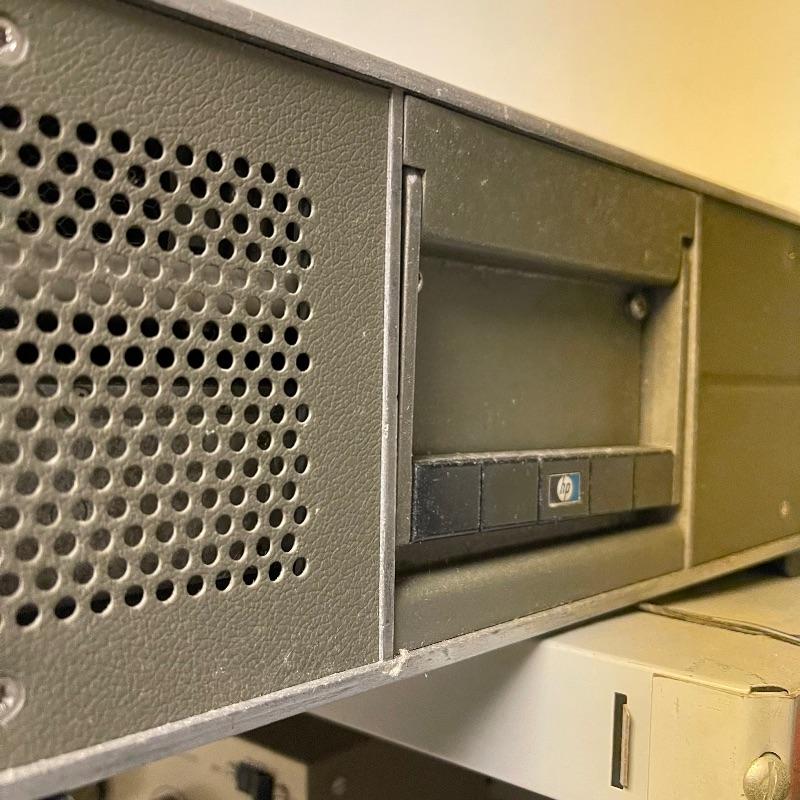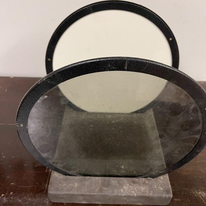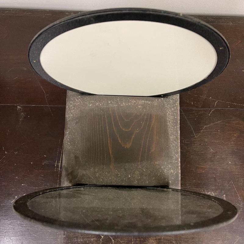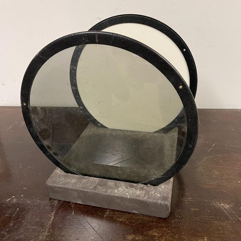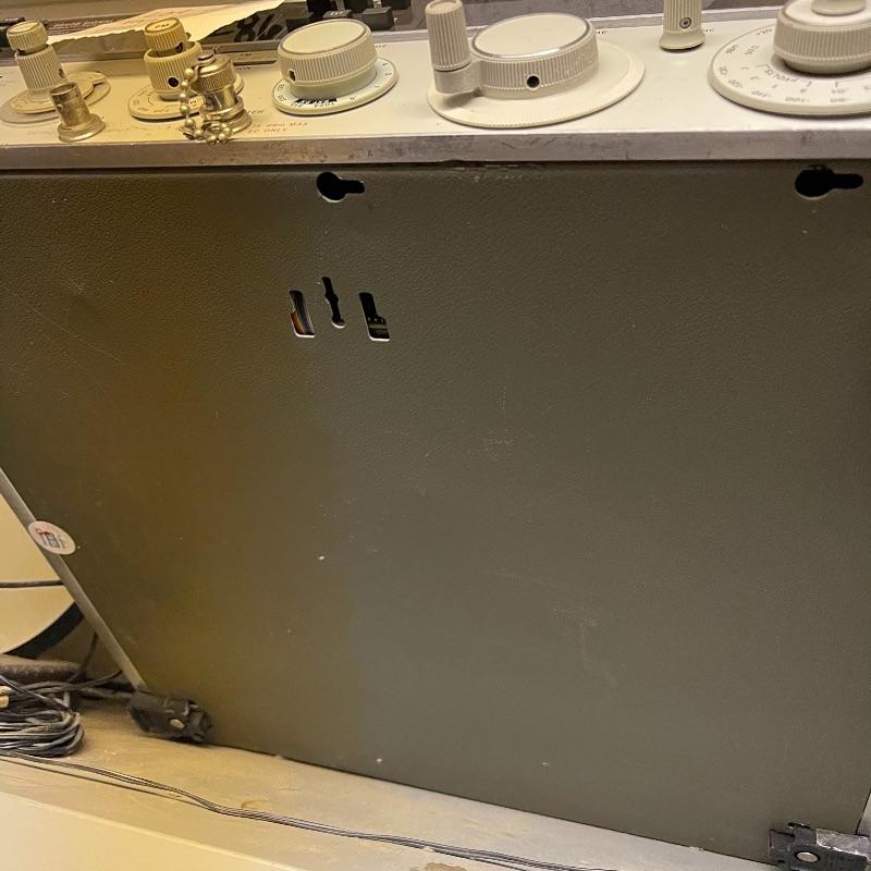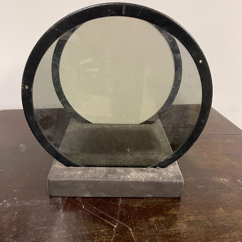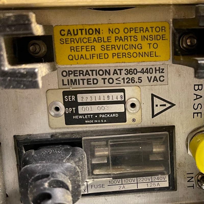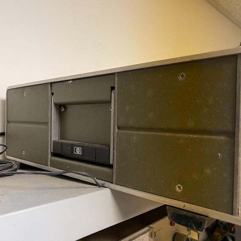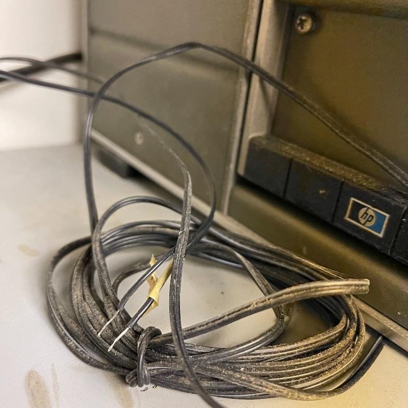 HP 8640B signal generator and more. One opaque circle and one transparent circle sitting on a wooden base.