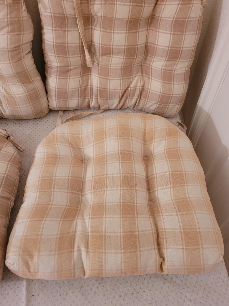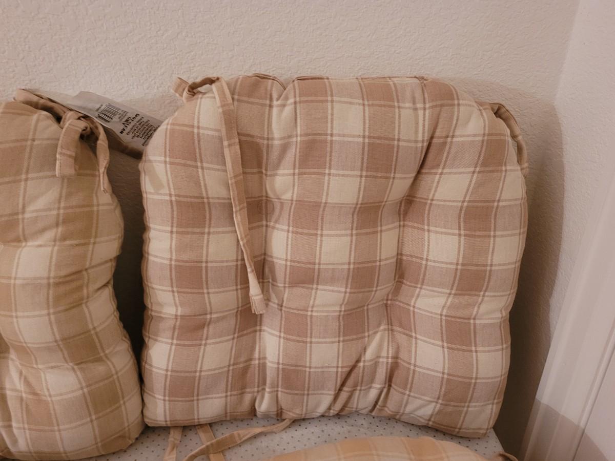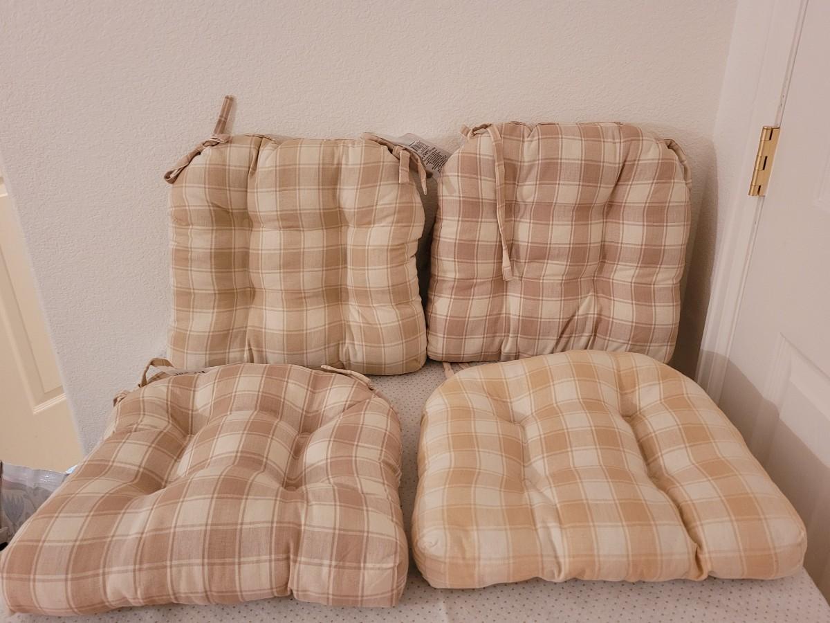 Lot 286: Set of 4 Tie On Seat Cushions (one is lighter than the others)