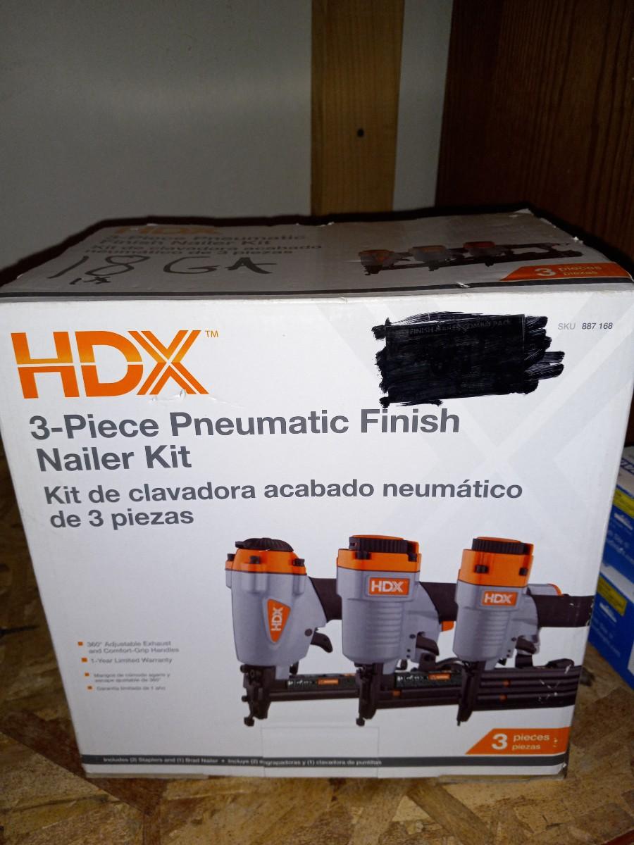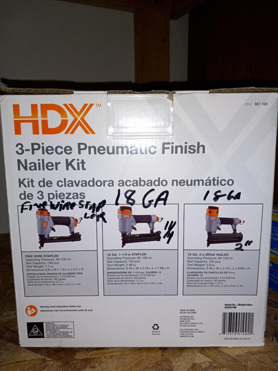 HDX NEW 3 PC PNEUMATIC FINISH NAILER KIT