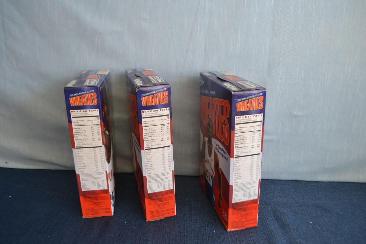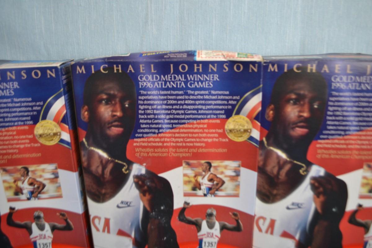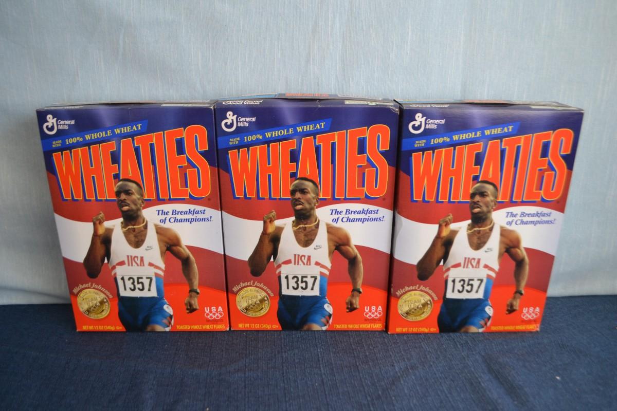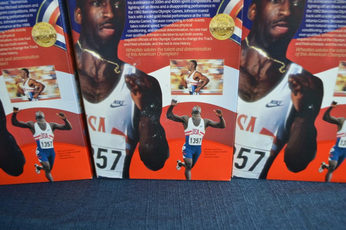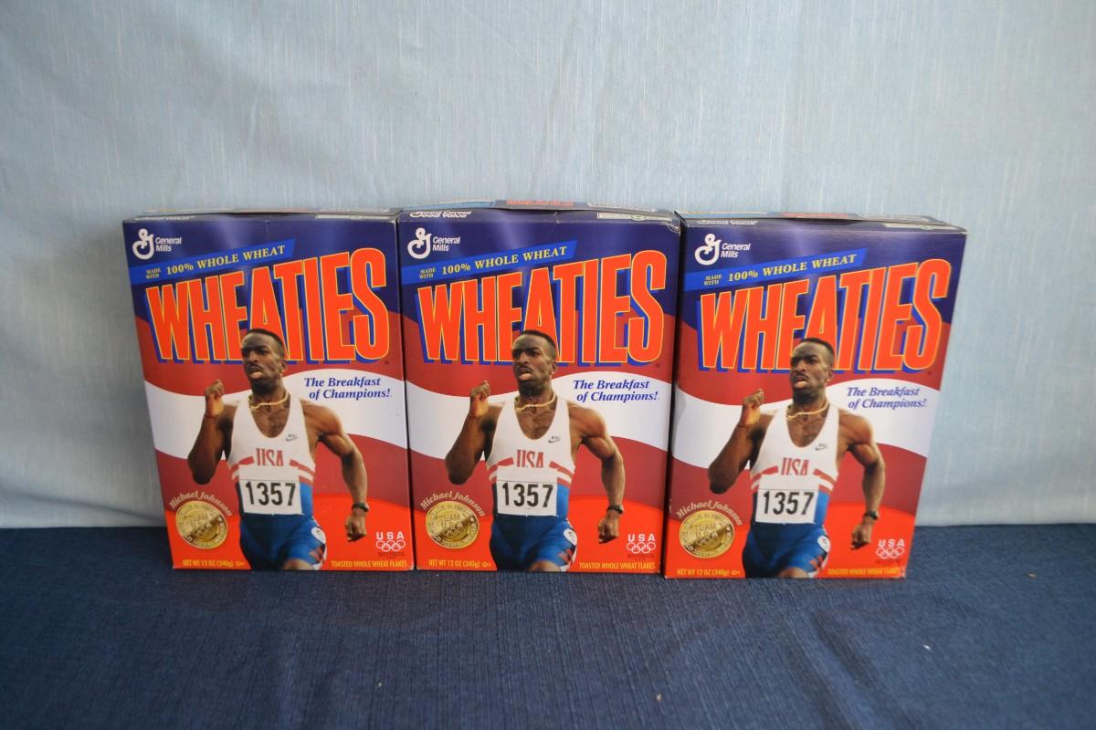 THREE MICHAEL JOHNSON WHEATIES BOXES (SEALED AND FULL)