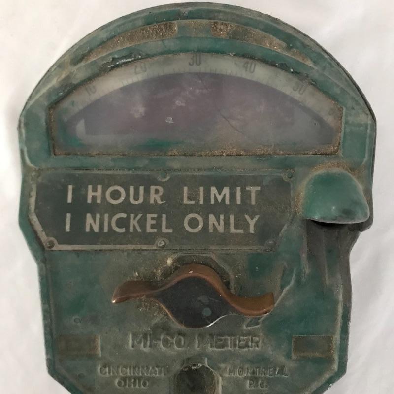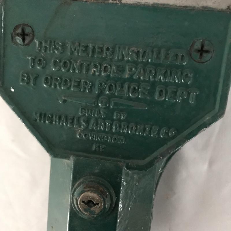 This classic antique parking meter would be the perfect gift for your favorite antique car collector! Very heavy and perhaps made of cast iron, markings read “1 Hour limit 1 nickel only” and also MI-CO meter, Cincinnati, Ohio, Montreal P.O. Patents no others pend.” Back reads “this meter installed to control parking by order of police department” and “built by Michaels Art Bronze Co. Covington KY”. See pics. Local pickup only.