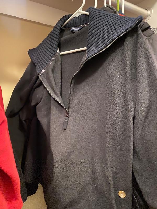 Lot of ladies jackets, sweaters, vest, by brands such as Lands’ End, Ralph Lauren, J. Crew, style. Co the, sizes are large and medium
