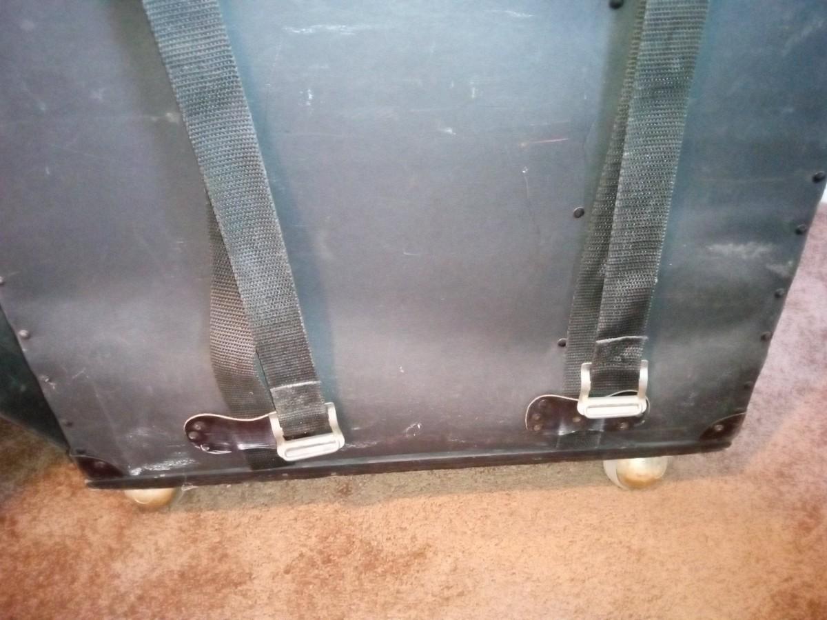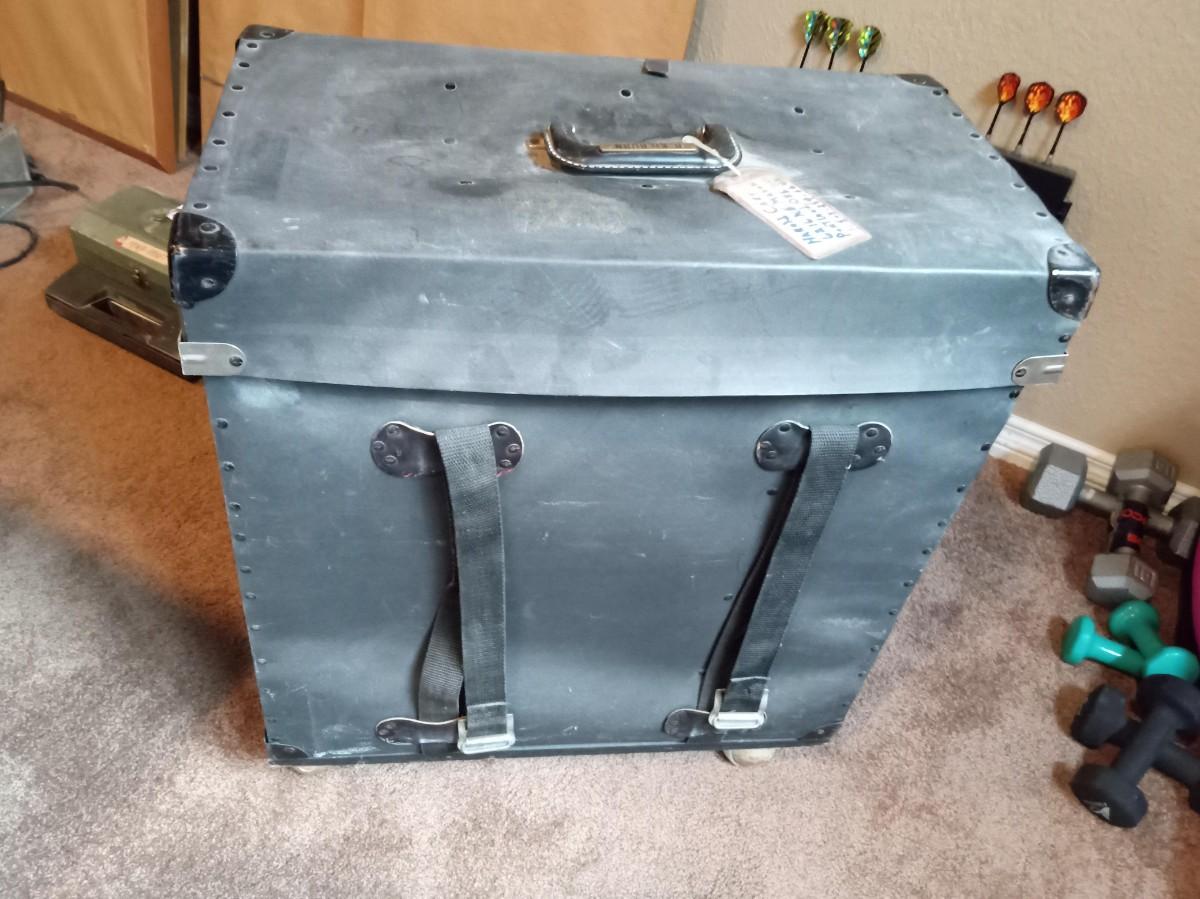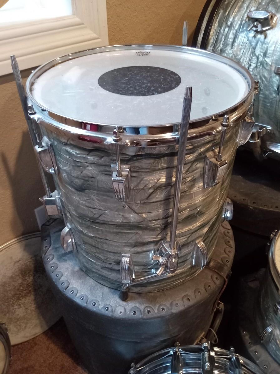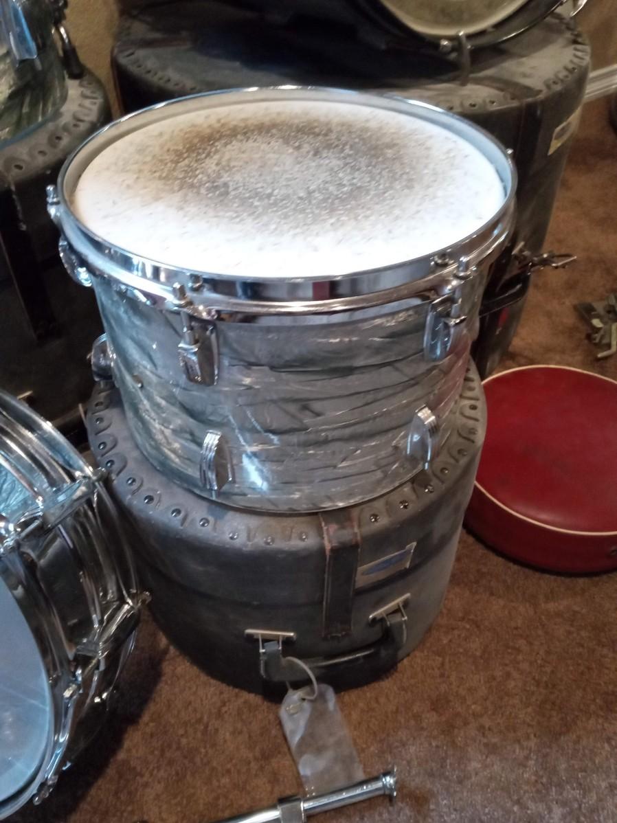 EACH PIECE HAS IT'S OWN STORAGE CONTAINER. THE BASS DRUM HAS SOME PAINT LOSS ALONG THE BACK RIM