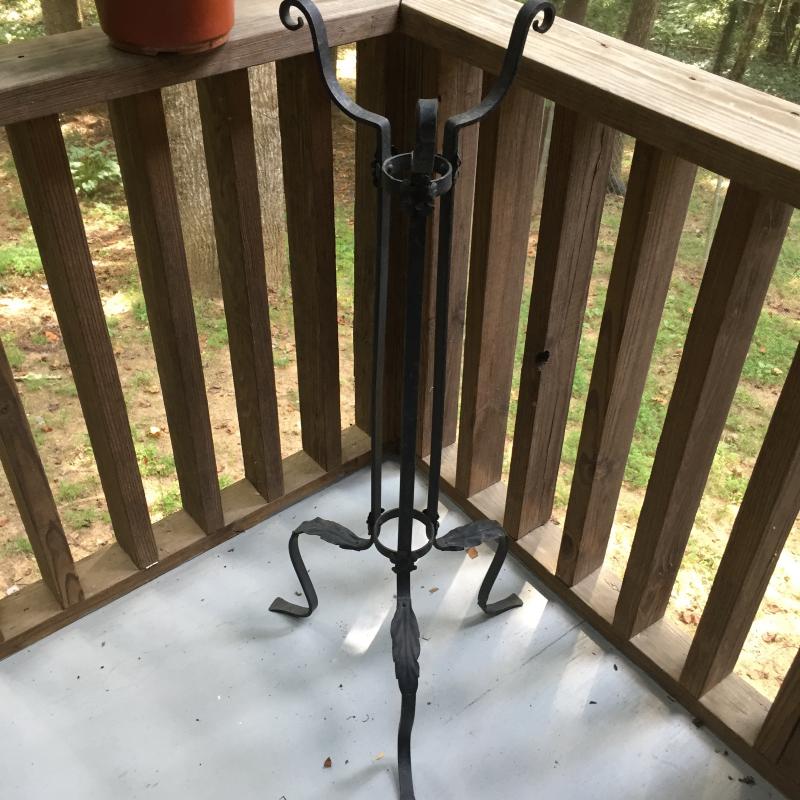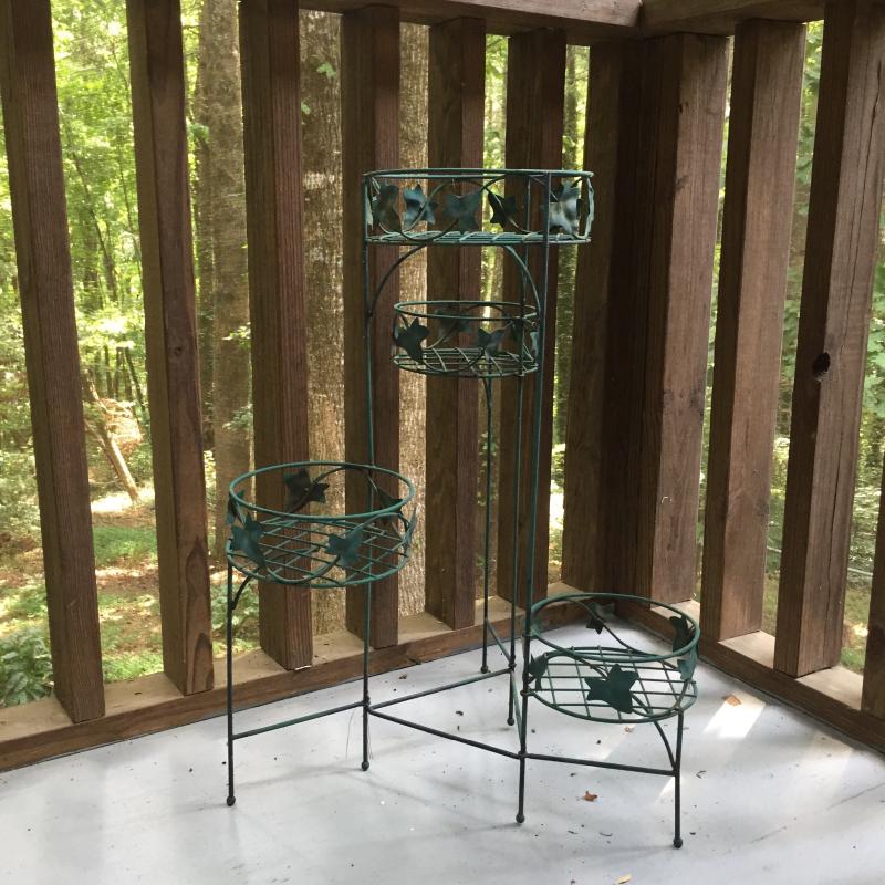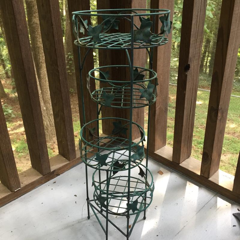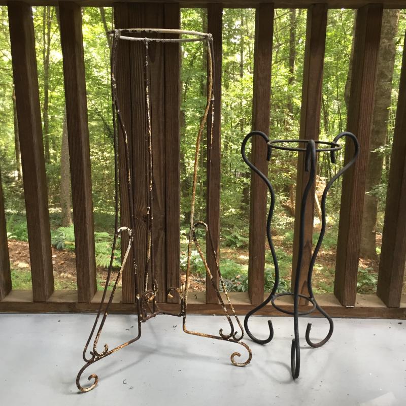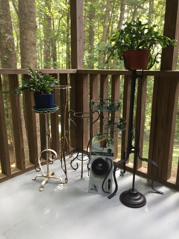 Collection of metal plant stands in different sizes. Lot also includes two plants that were healthy when photographed but can not guarantee their vitality by pick up time! Some Rust on Stands-See Pictures. Tallest Stand Measures 40” Tall. Local Pickup Only