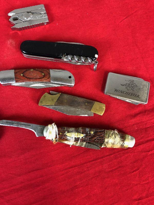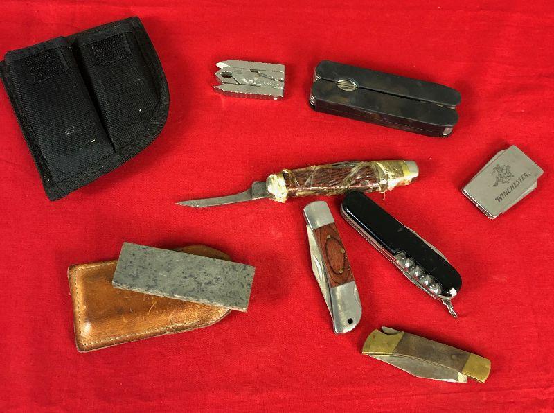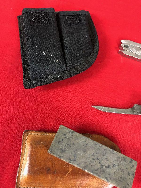 Lot 286 Several pocket knives, wet stone, folding pliers