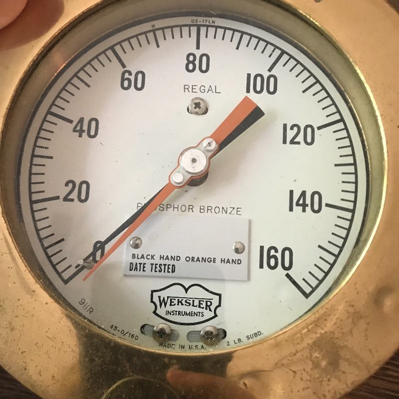 Lot contains Weksler Phosphor Bronze Pressure gauge. Brass gauges such as this one are meant to be used when vibrations and pulsations are not present. See pics. Shipping available.