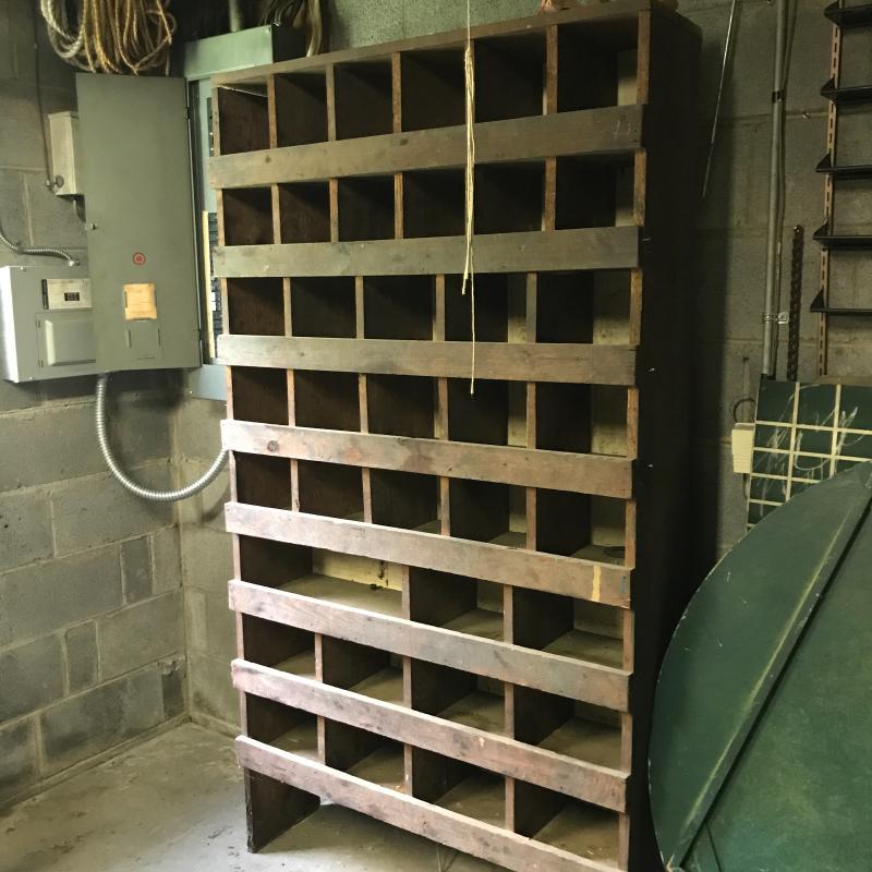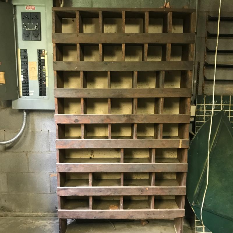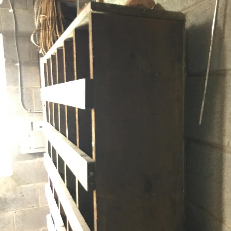 Nice handmade cabinet to keep you organized! Use in your kitchen? Shed? Booth? Lots of options with this piece. Vinyl back. Measures 40” x 11” x 72”. Bring help to load. You’ll need to go up a small flight upstairs to exit outside. No shipping