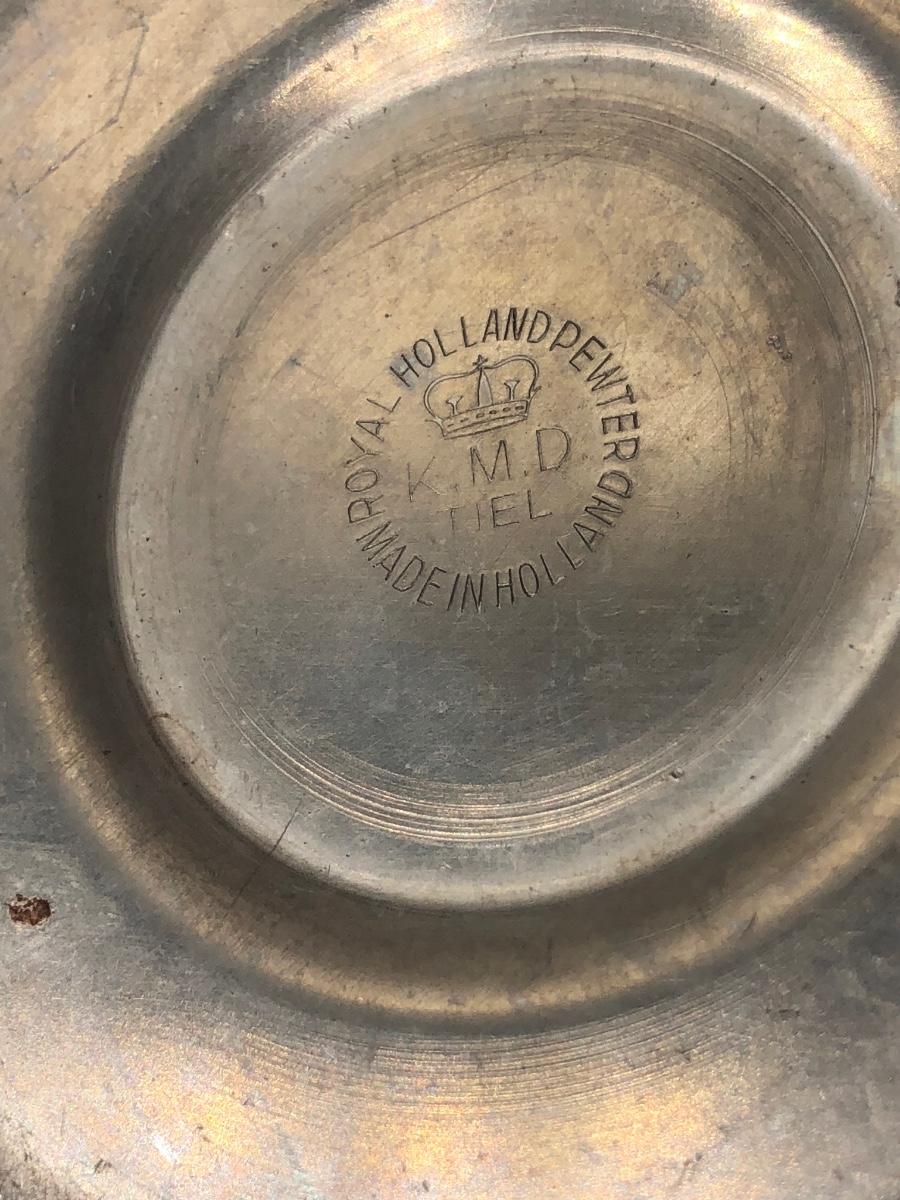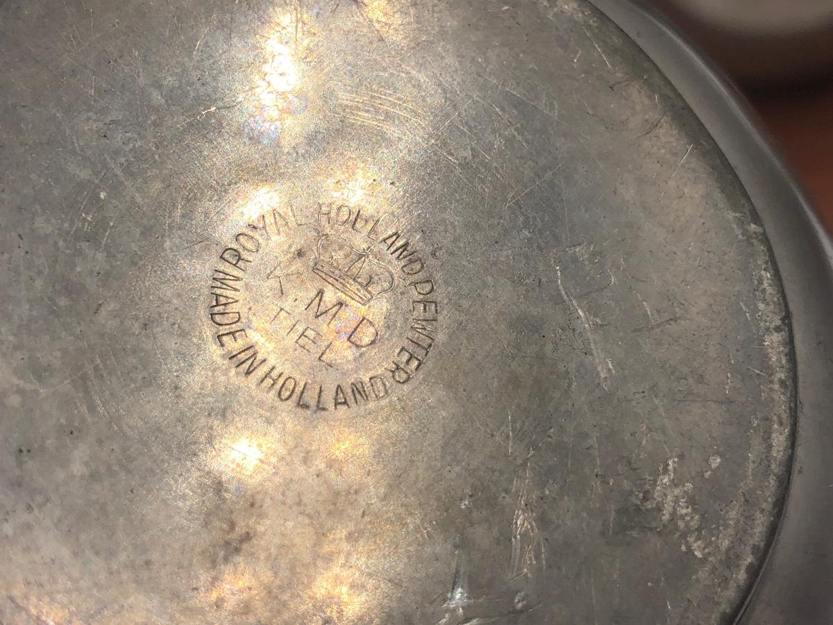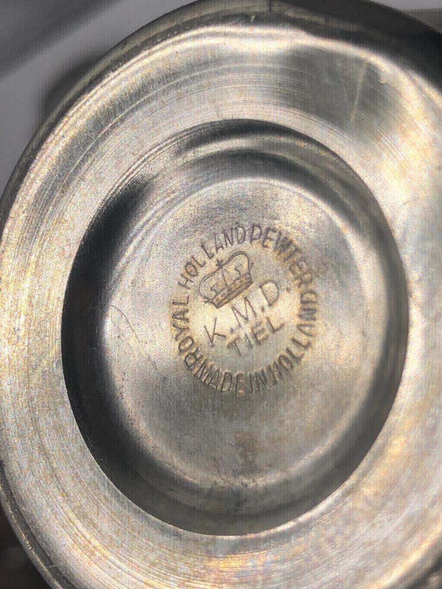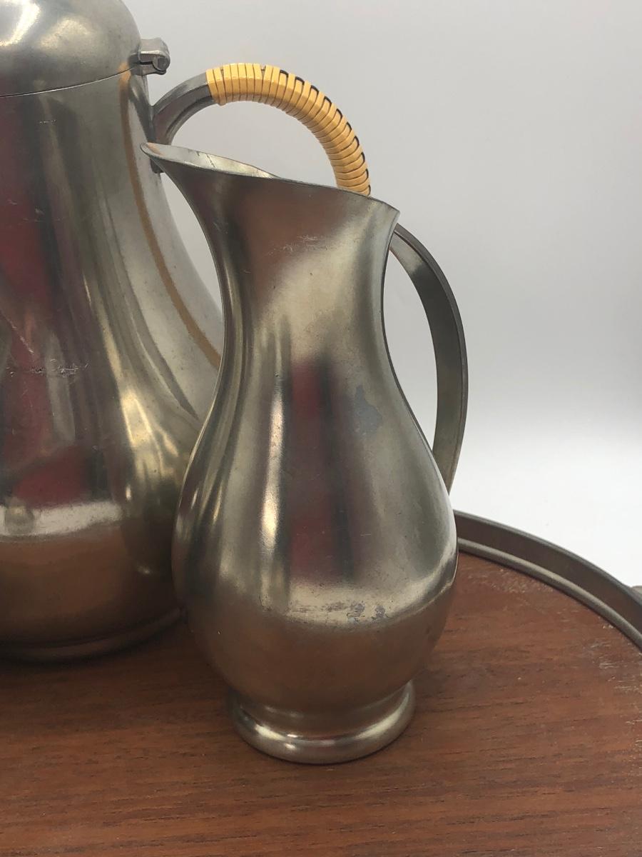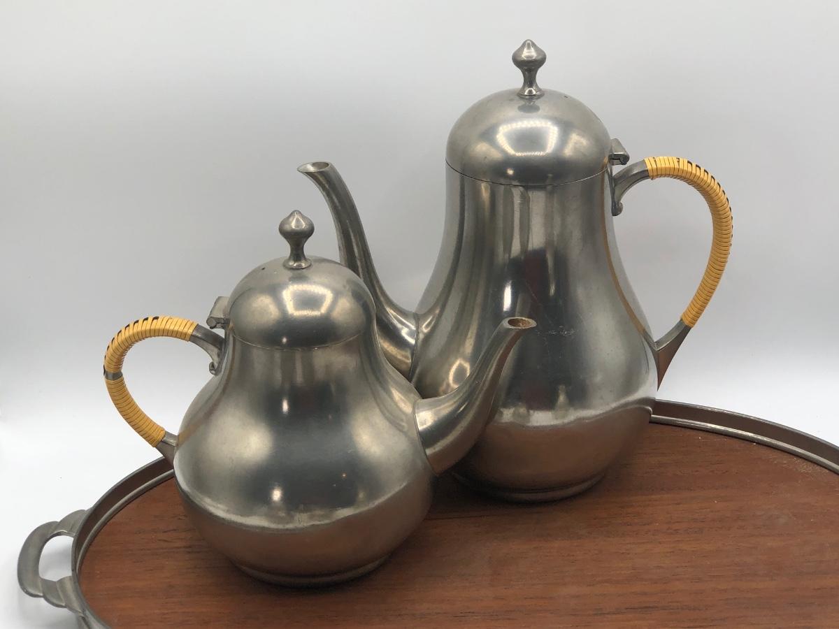 LOT 286L: Royal Holland Pewter Coffee / Tea Serving Set w/ Wood Top Tray