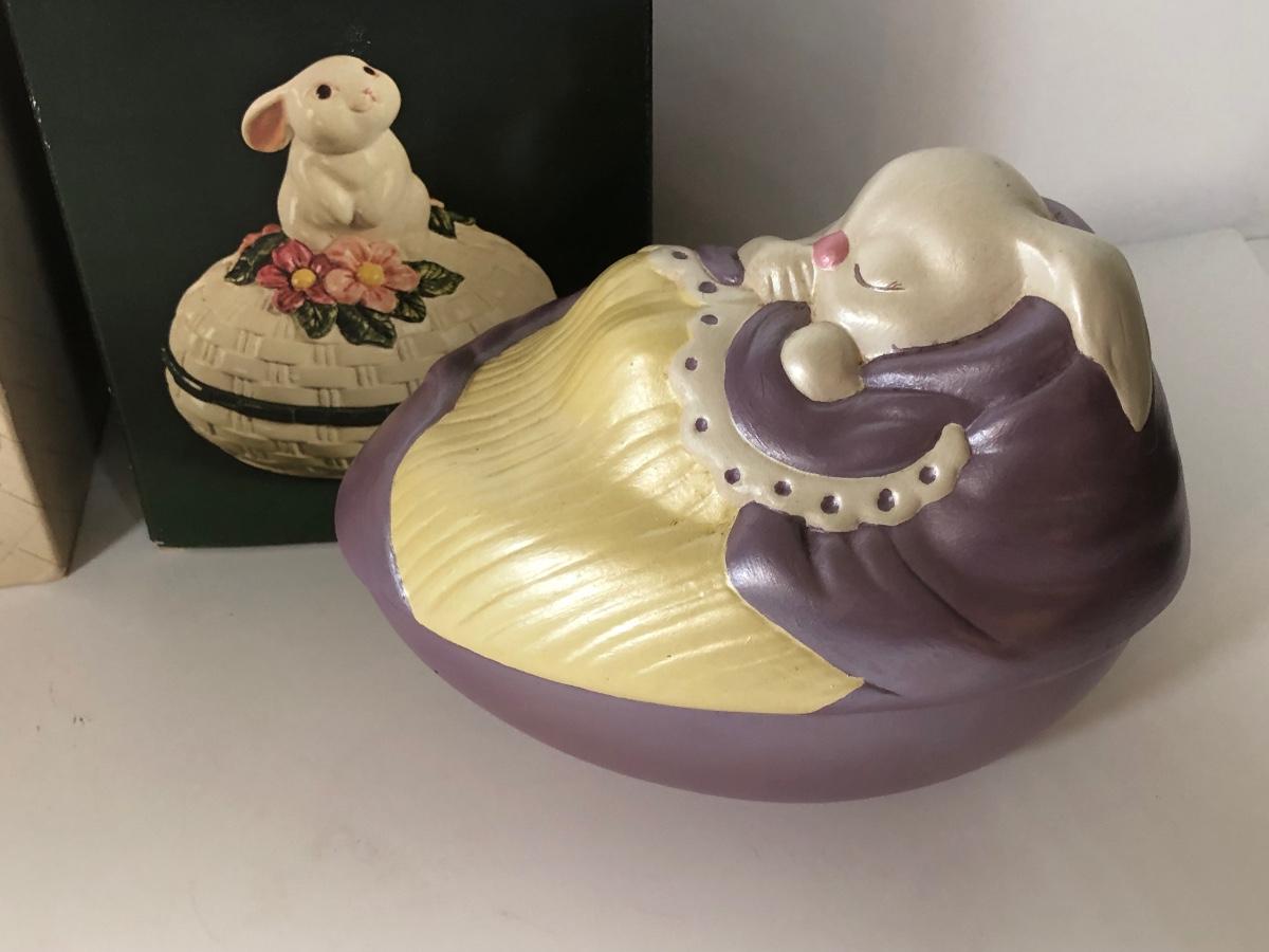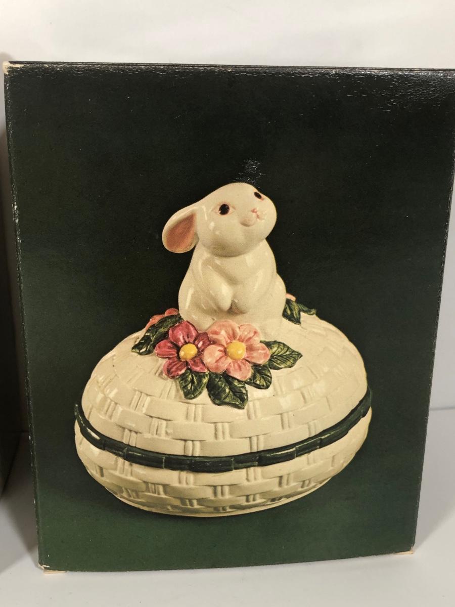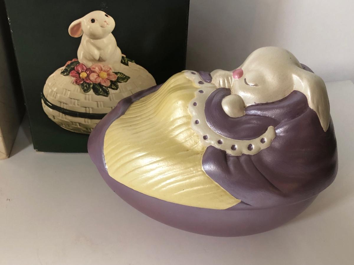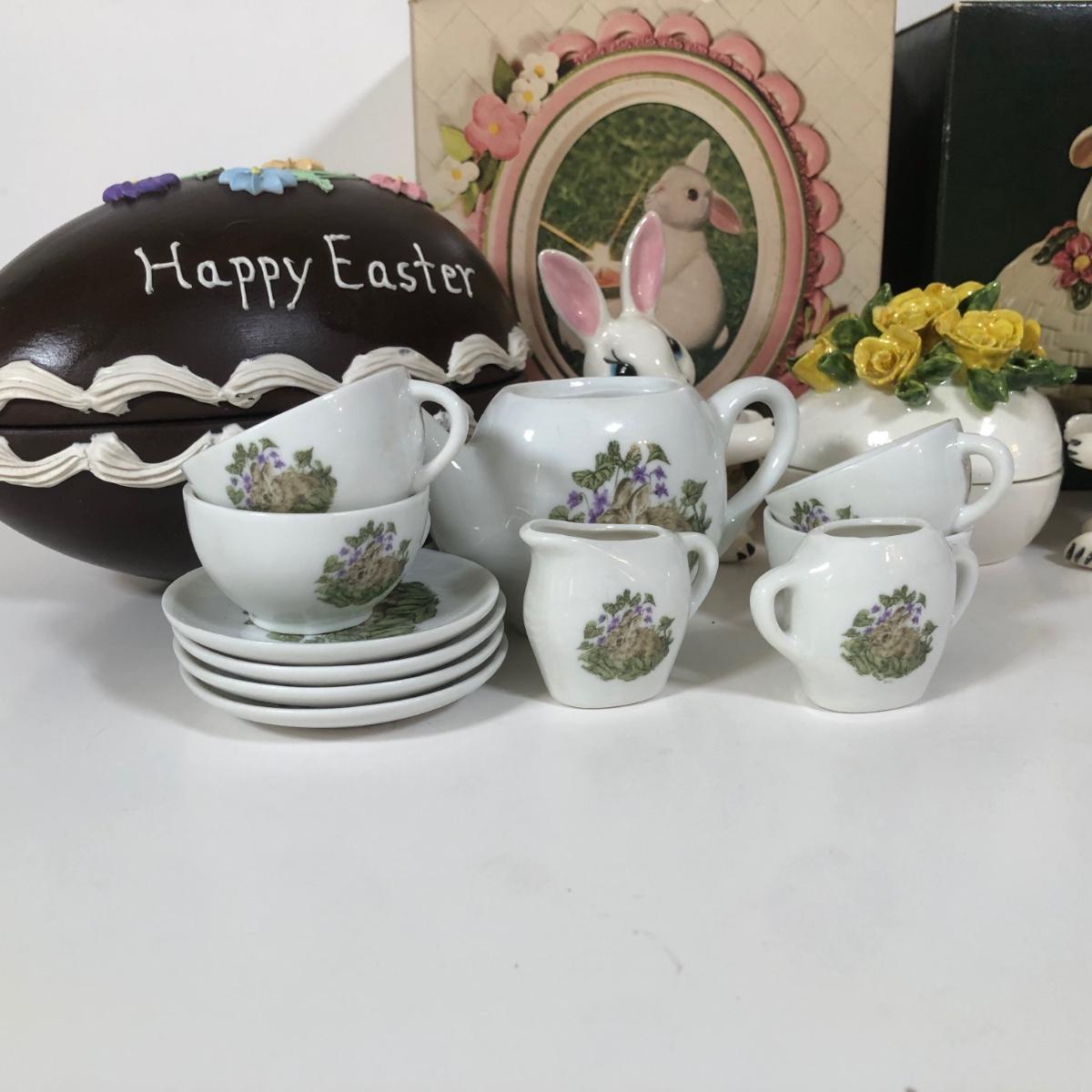 LOT 286L: Vintage Easter Collection - Mini Tea Set, Lidded Eggs, Avon Bunny Luv Trinket Dish & More