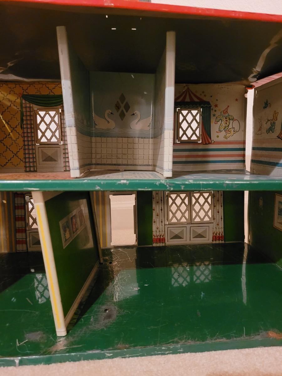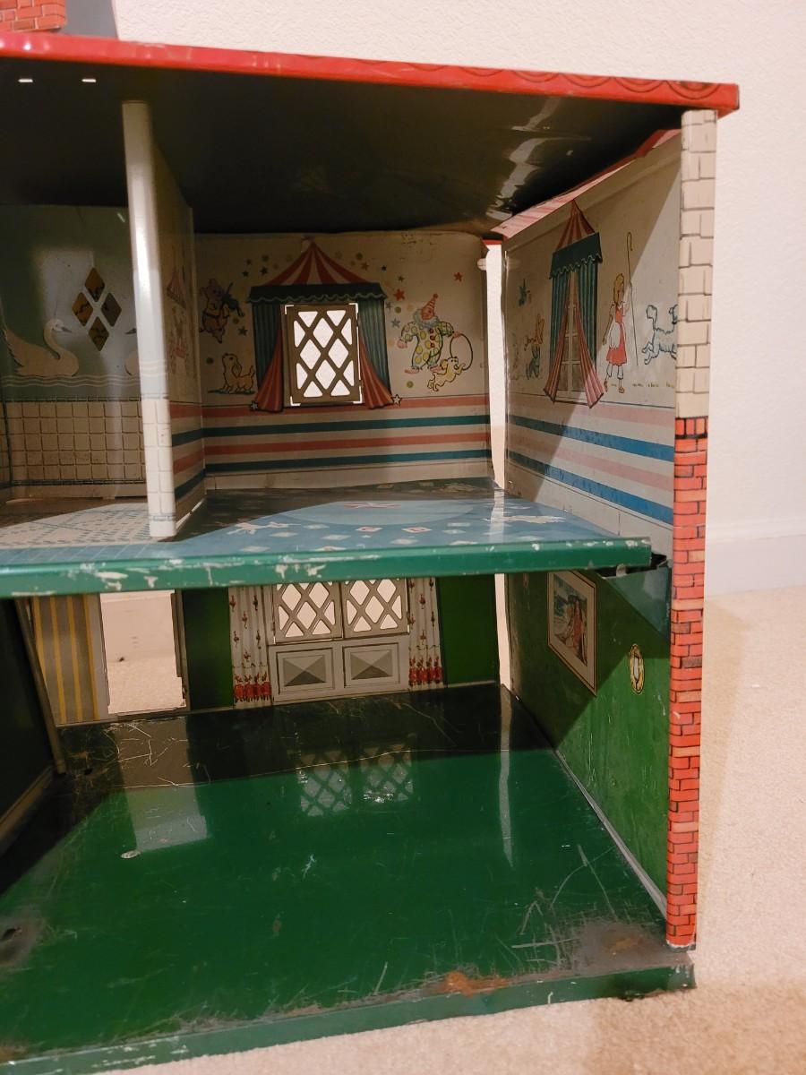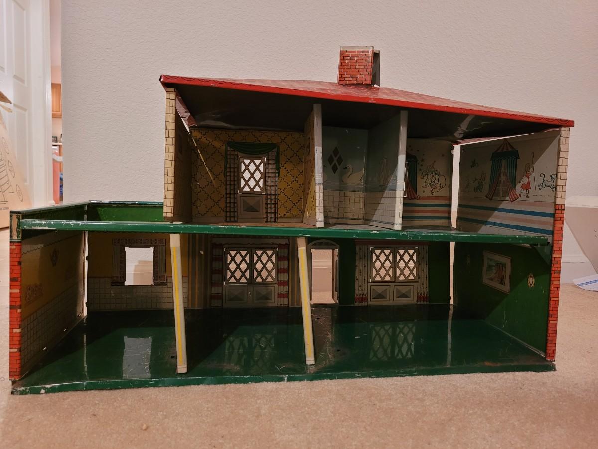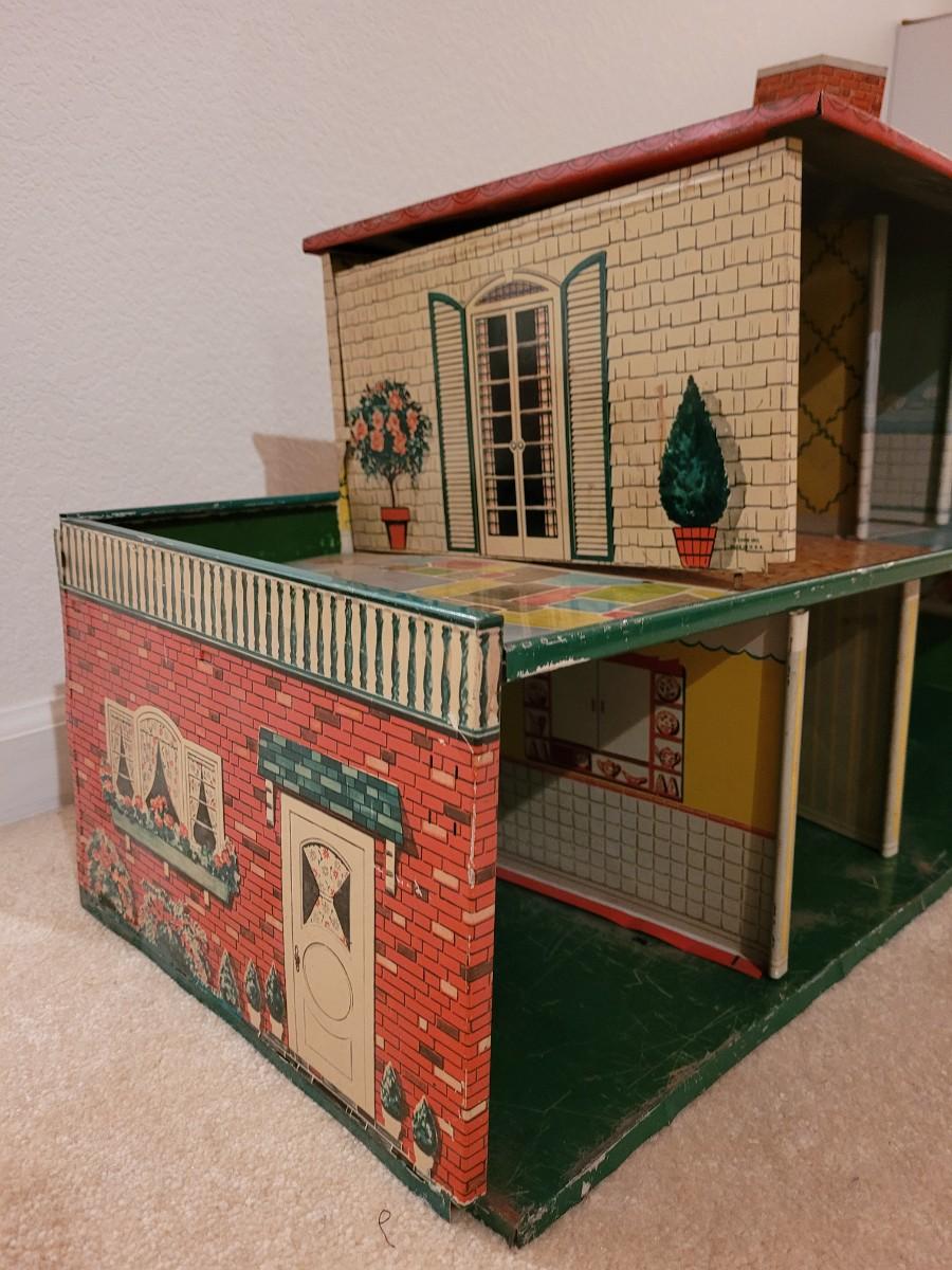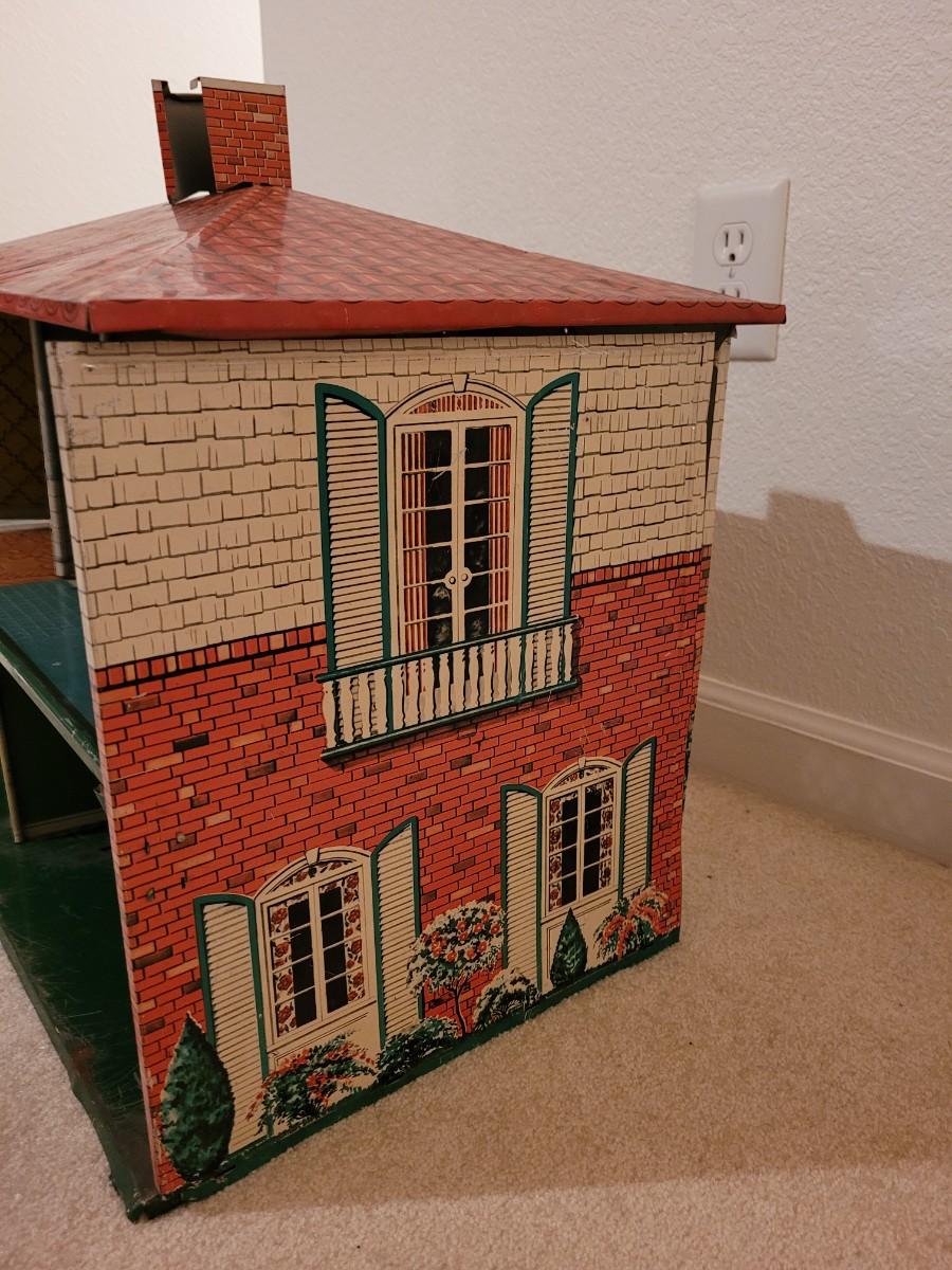 Lot 287: Vintage 1950s Marx Metal Tin Litho Dollhouse Suburban Colonial