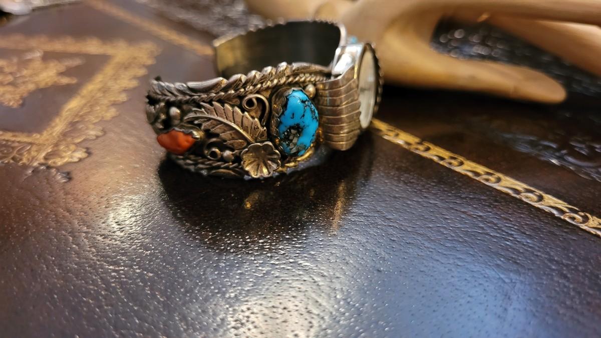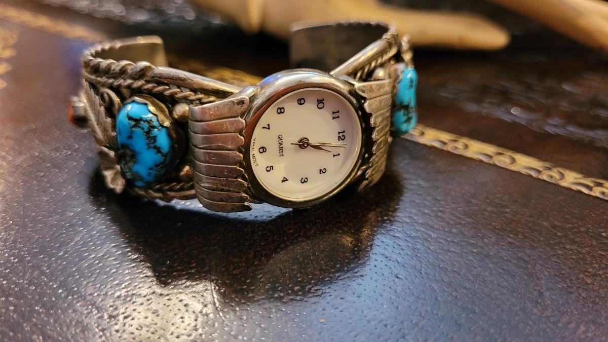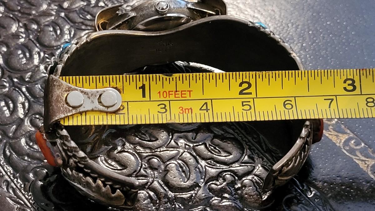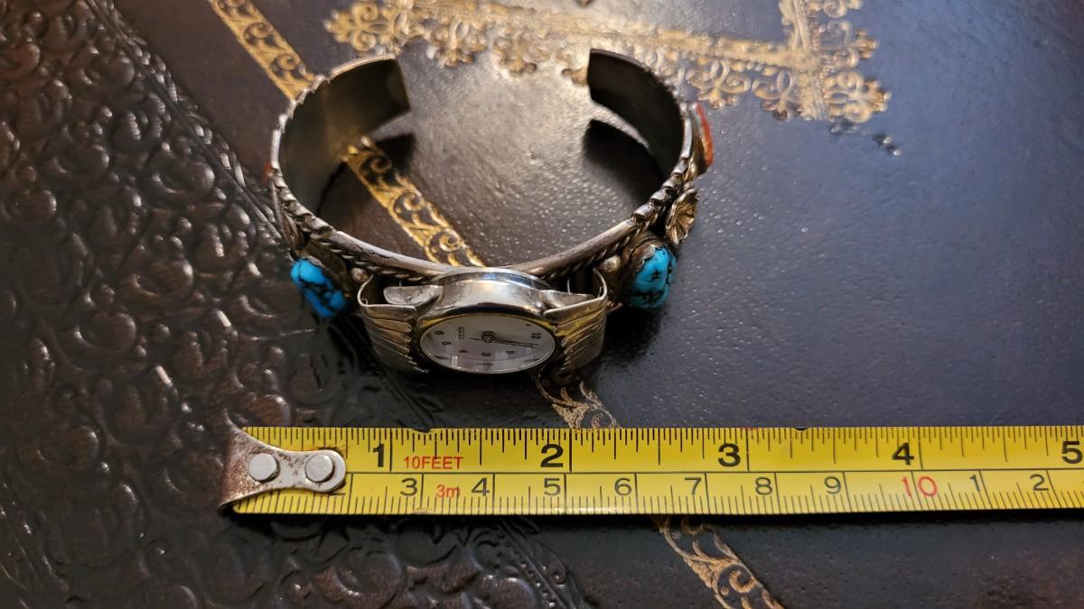 Lot 287: Vintage Sterling Silver SIGNED Native American Watch Cuff Bracelet UNISEX