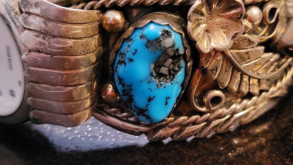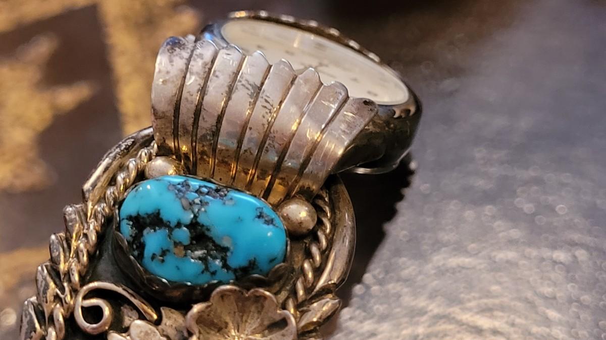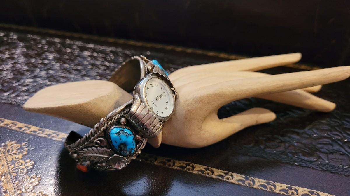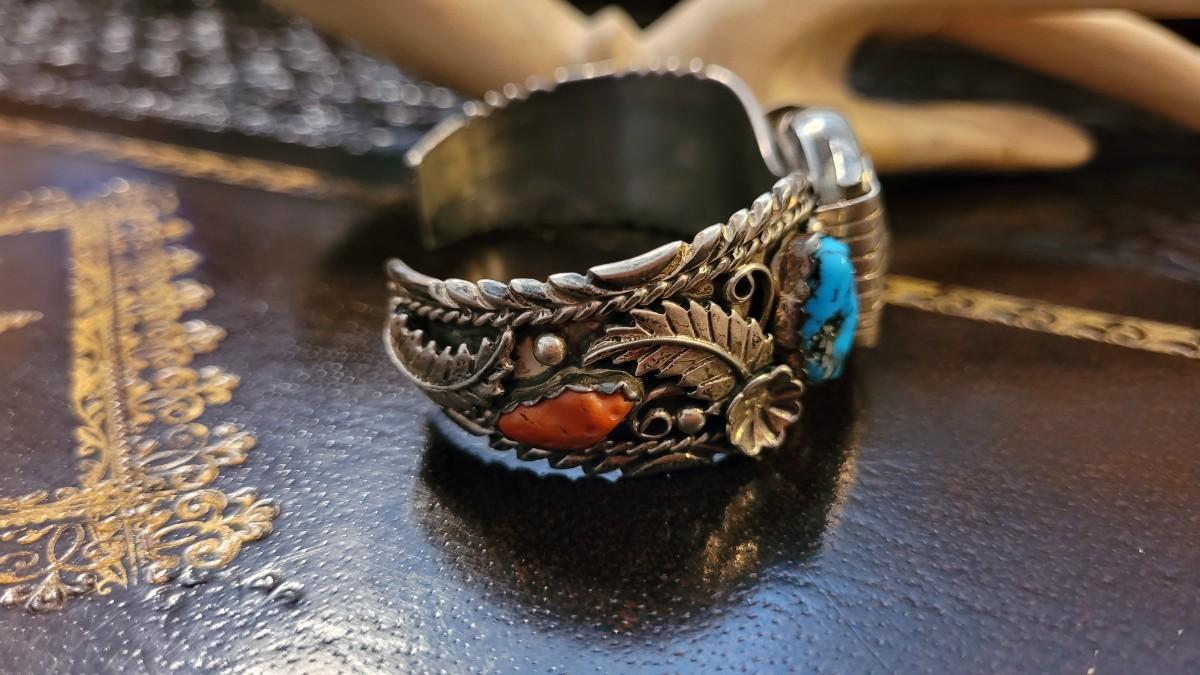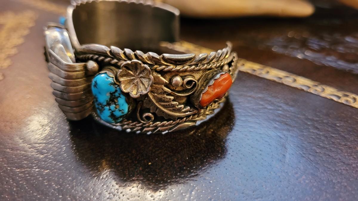 Lot 287: Vintage Sterling Silver SIGNED Native American Watch Cuff Bracelet UNISEX