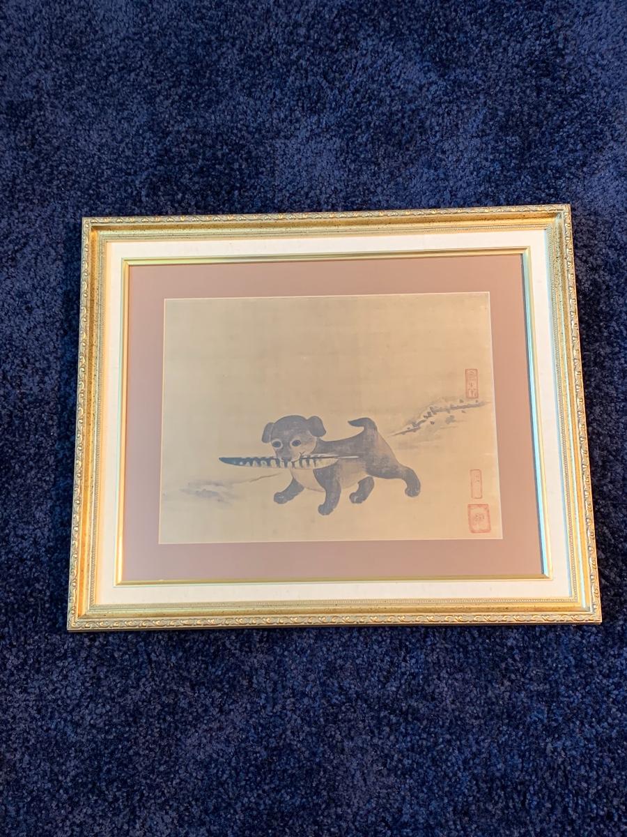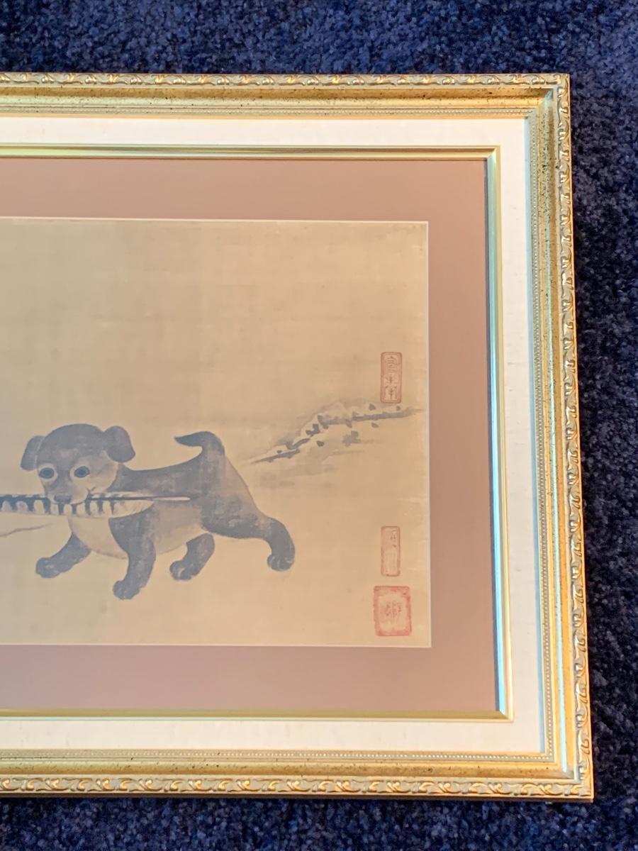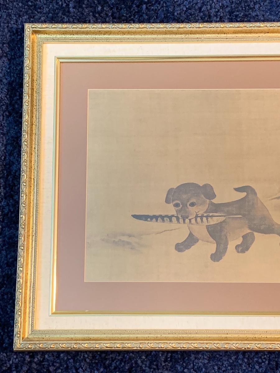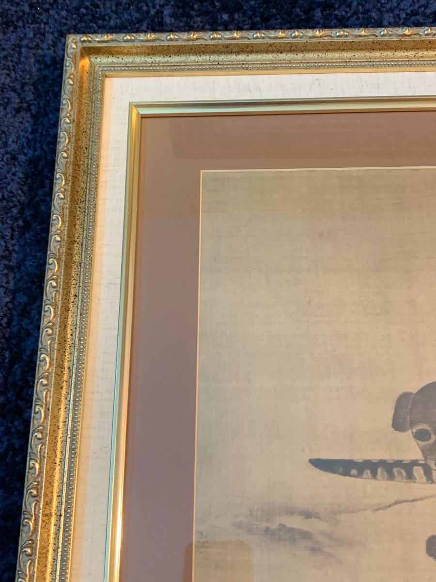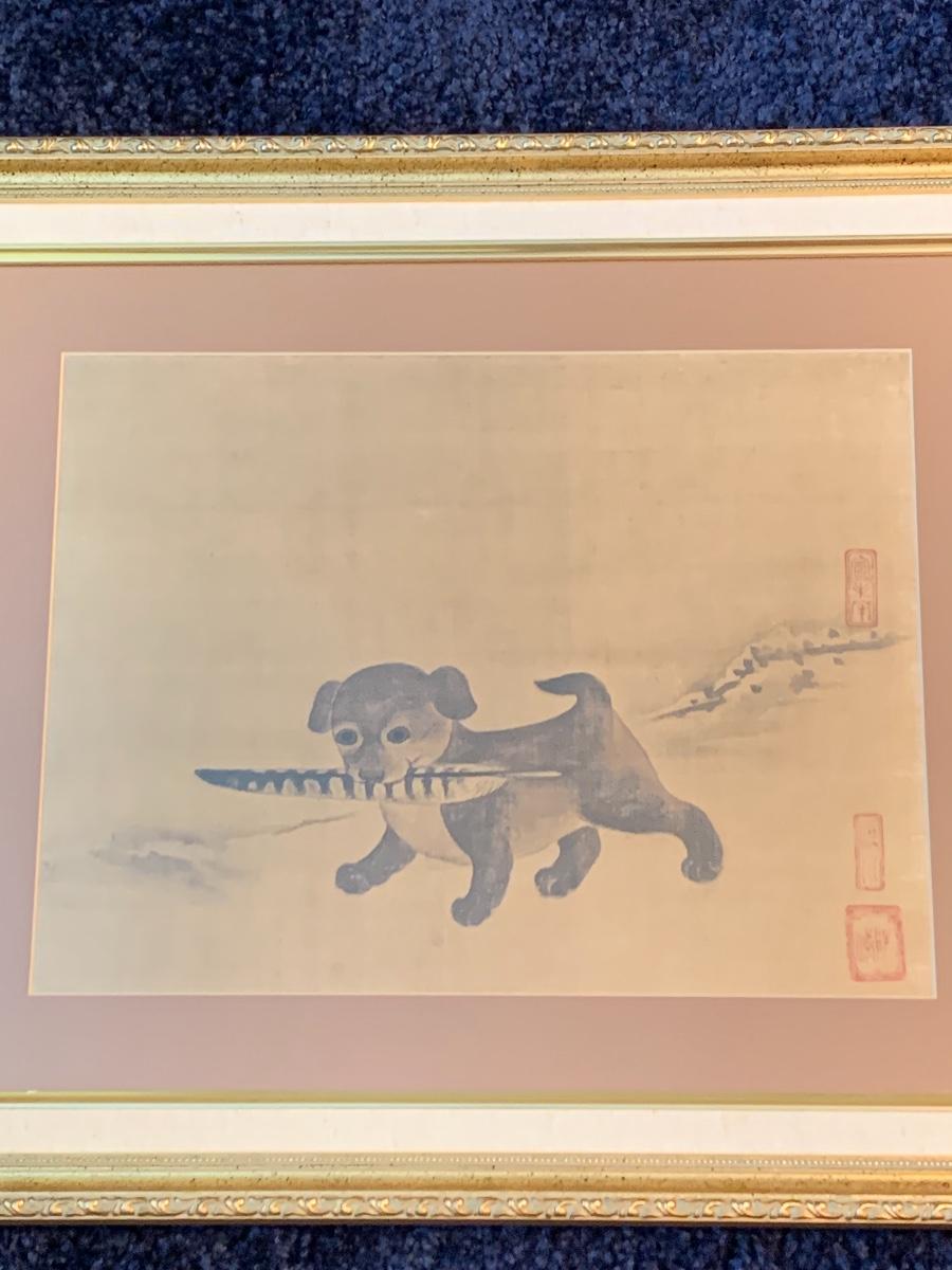 Lot 287: MCM Framed Sketch on Rice Paper (Asian Inspired: Dog w/feather)