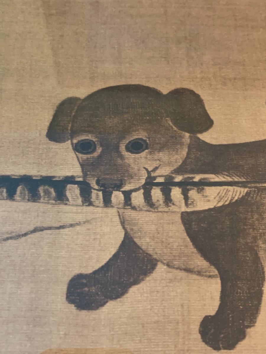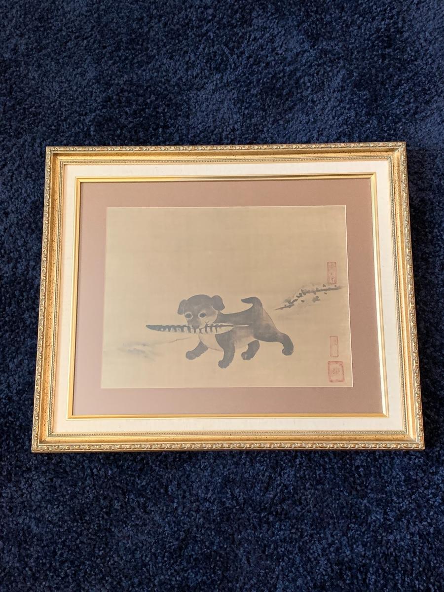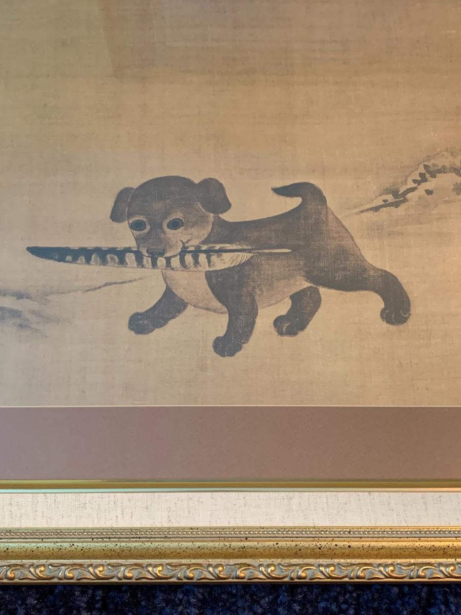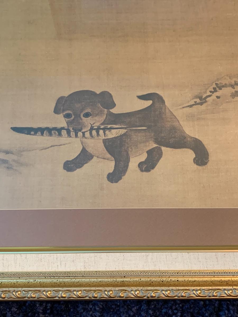 Lot 287: MCM Framed Sketch on Rice Paper (Asian Inspired: Dog w/feather)