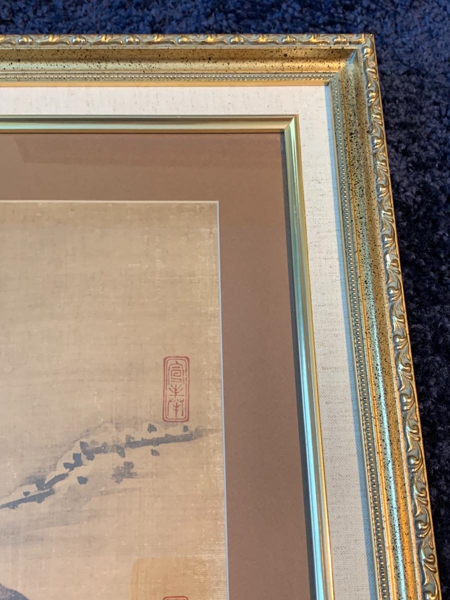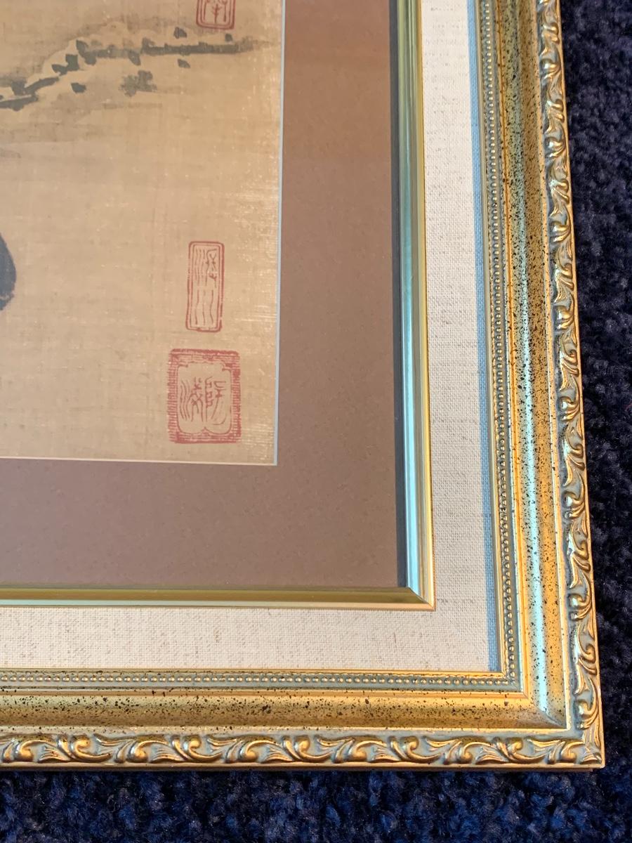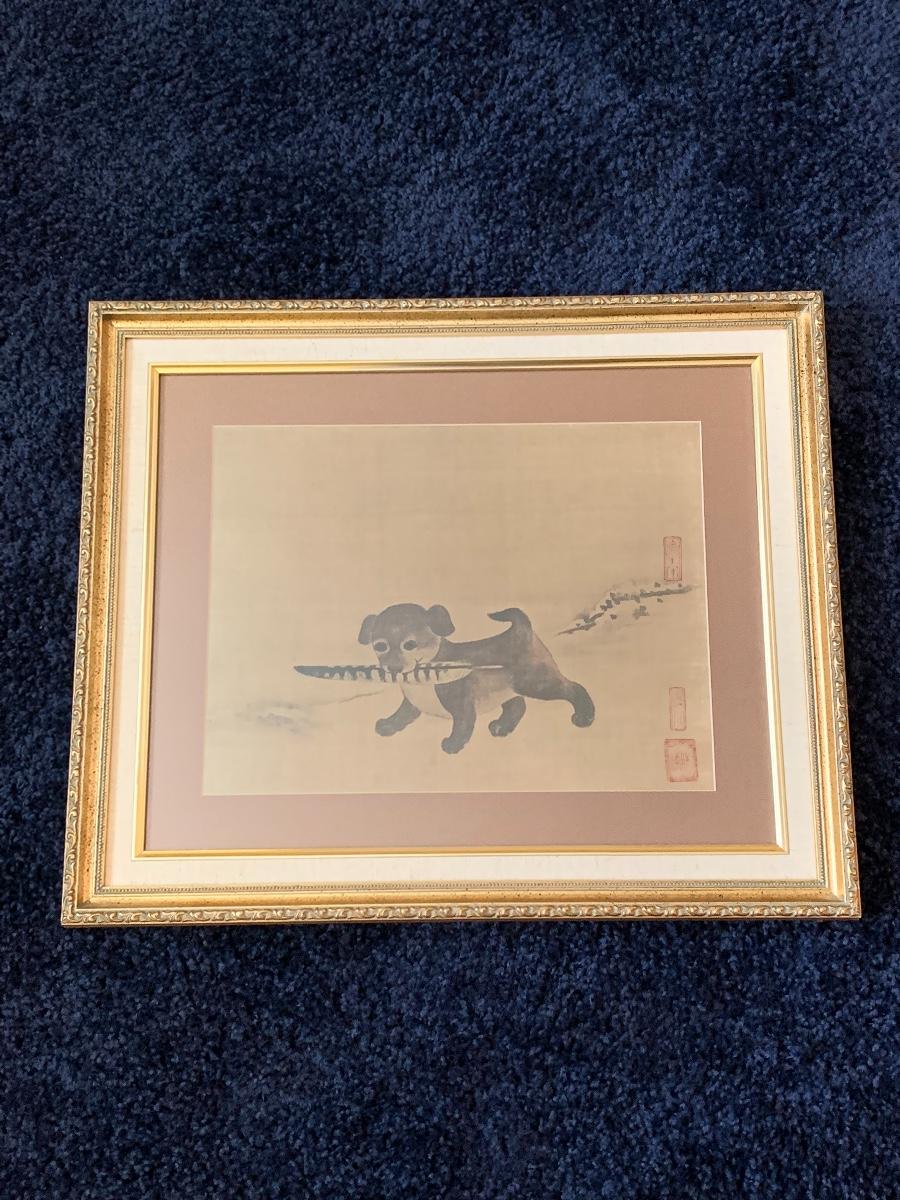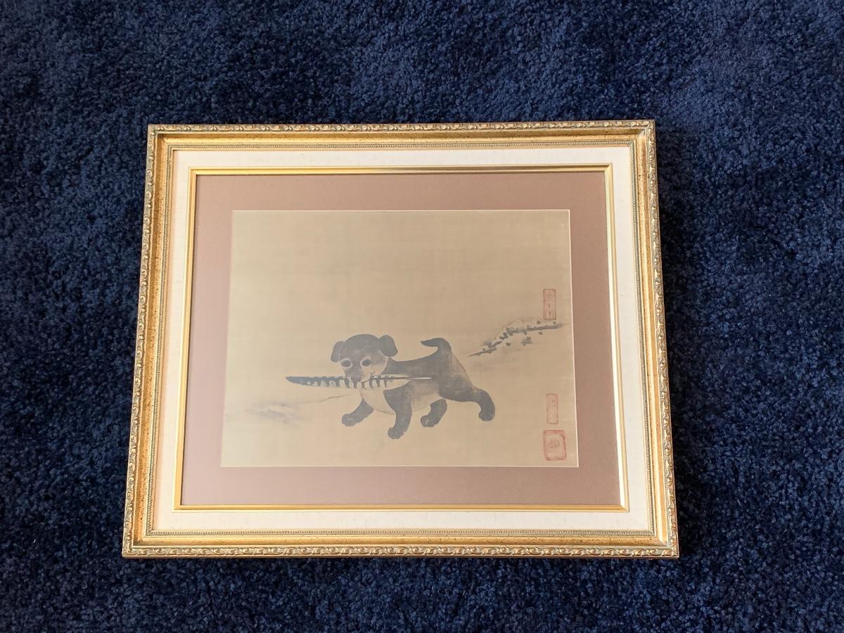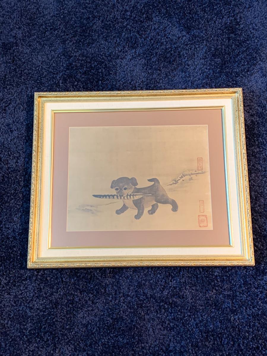 Lot 287: MCM Framed Sketch on Rice Paper (Asian Inspired: Dog w/feather)
