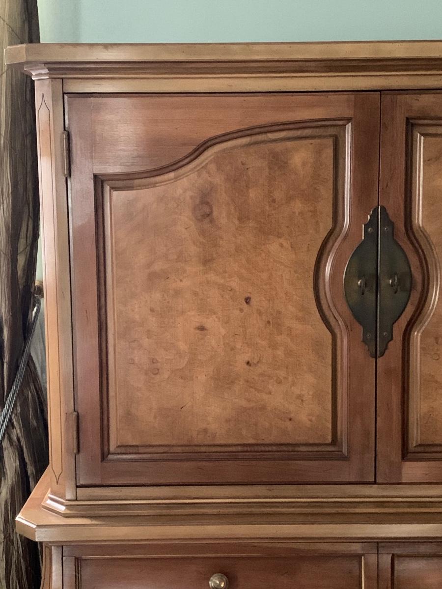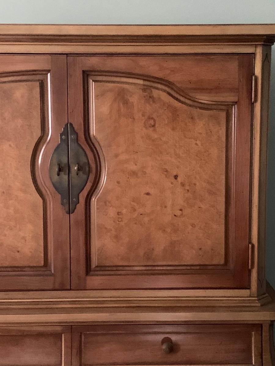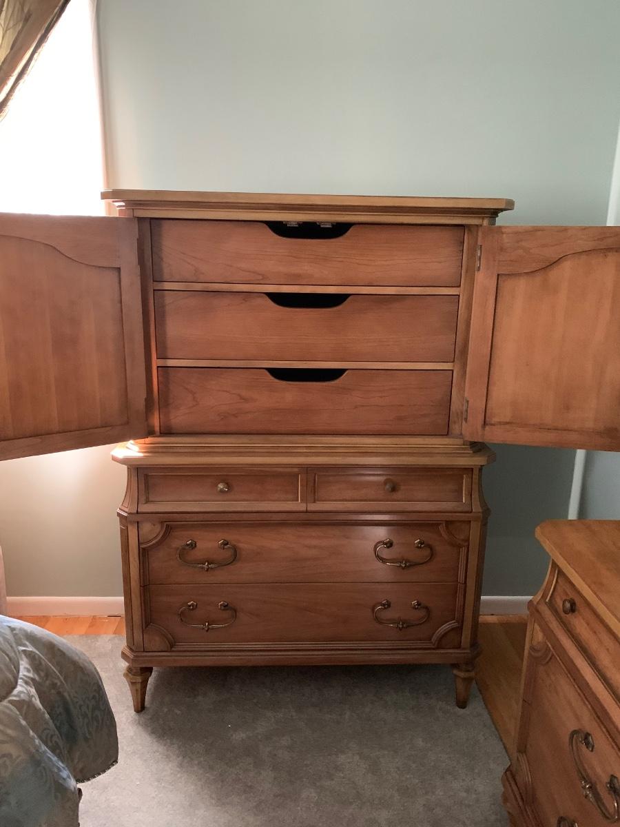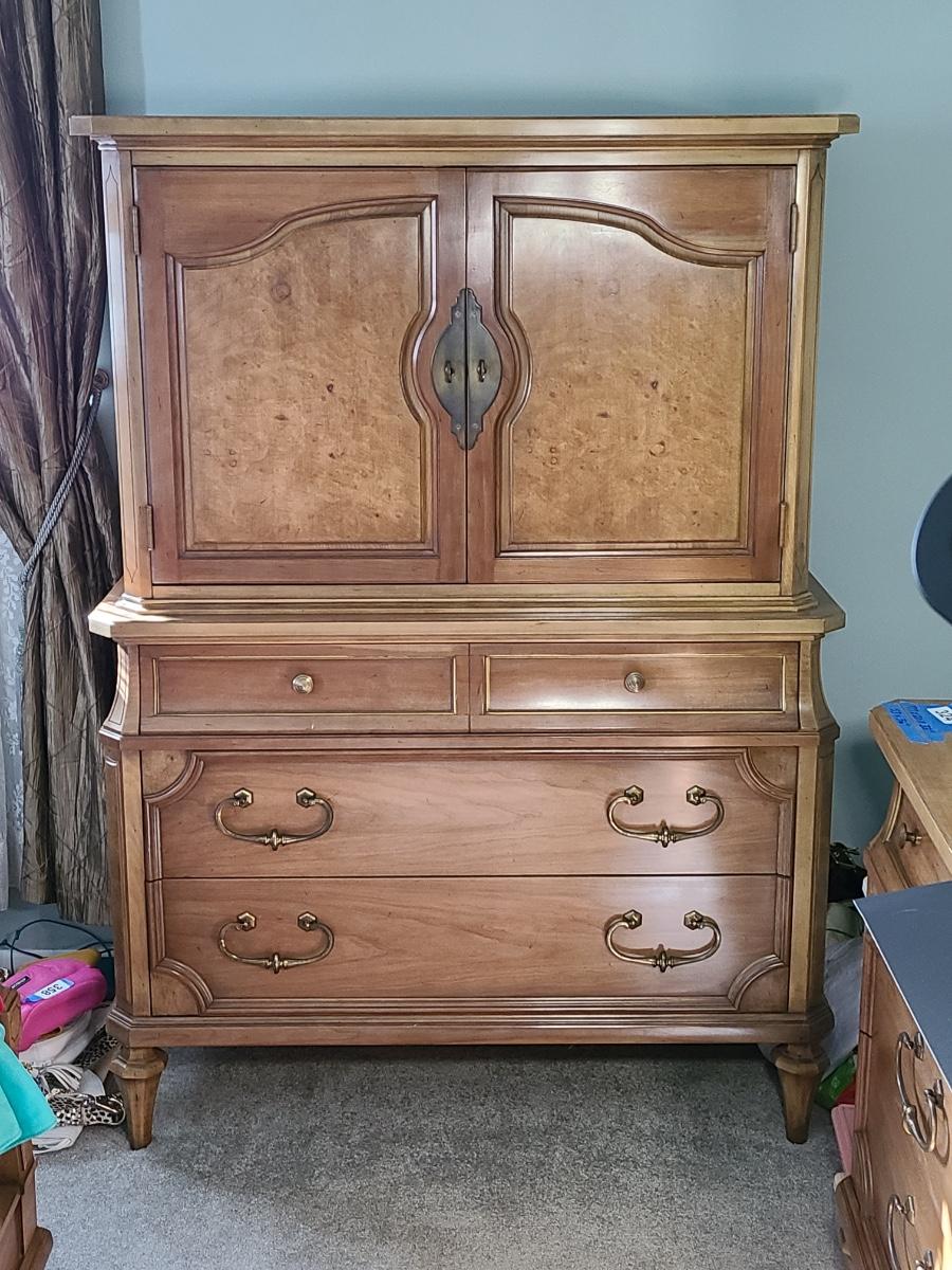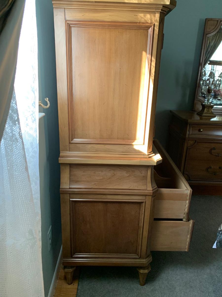 Beautiful solid craftsmanship by Thomasville. This is solid and looks brand new. Displayed pretty much in a guest room. Overall dimensions: 42 x 20 x 59 inches tall. This would look stunning in any room! Please see all pictures as they are the best representation of the items. The pictures show condition, measurements if taken, and what is included in the lot. Due to the large amount that we photograph and the time frame, we are not always able to take measurements. All items unless noted, are pre-owned and have been used. If you purchased furniture, you must bring help. We do not allow one person to carry large furniture out on their own. Bring help, tools and a truck for the safety of our client’s homes, and your personal safety. Company policy. Thank you.