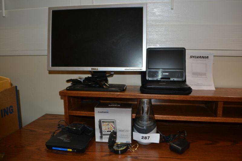 DELL MONITOR, SYLVANIA PORTABLE DVD PLAYER/SCREEN, GARMIN NUVI, ELECTRIC PENCIL SHARPNER, COMPASS