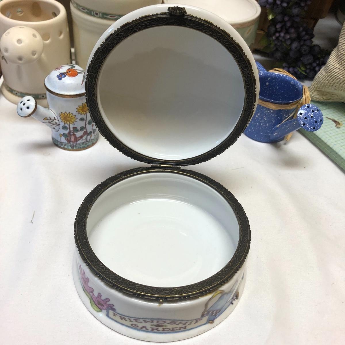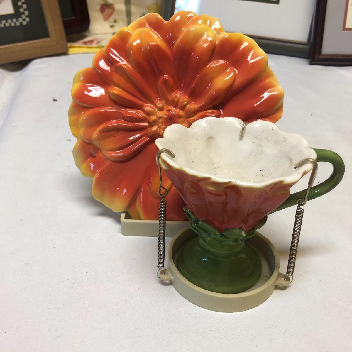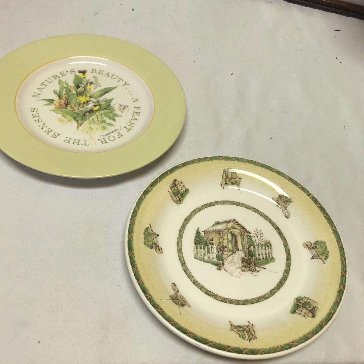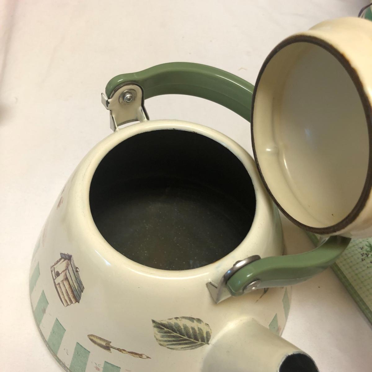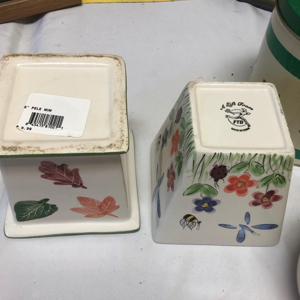 This very large lot is for all you garden lovers who like nothing better than bringing the outdoors in! Some of the many items include a picnic style basket, metal stovetop kettle, Marjolein Bastin teapot, 3 glass chopping boards, 2 small ceramic lamps (one untested as it takes a tiny bulb), throw pillows, both metal and ceramic decorative watering cans (including 1 Aynsley bone China), framed art prints (includes a Barbara Mock and NC artist Cotton Ketchie), 4 table runners, napkins (note the stain shown in last last image), 2 shower curtains, 3 curtains (2 are rod curtains and the other a valance), decorative plates and much more.