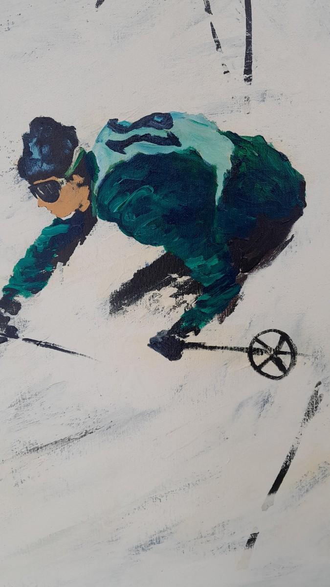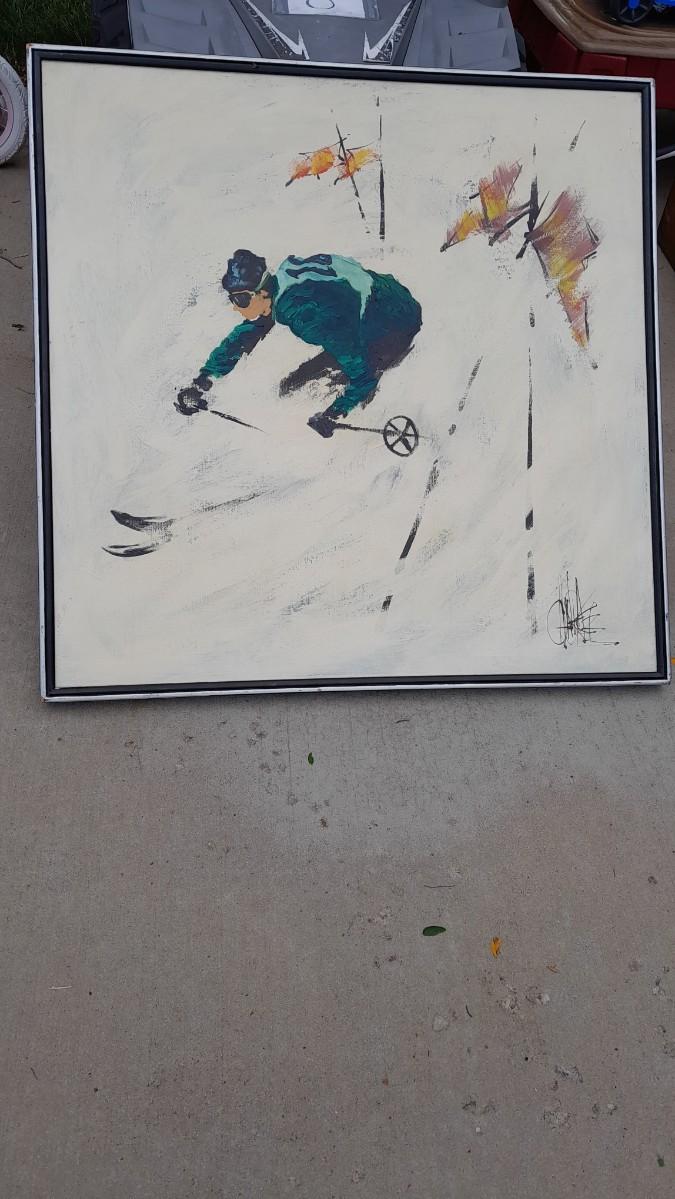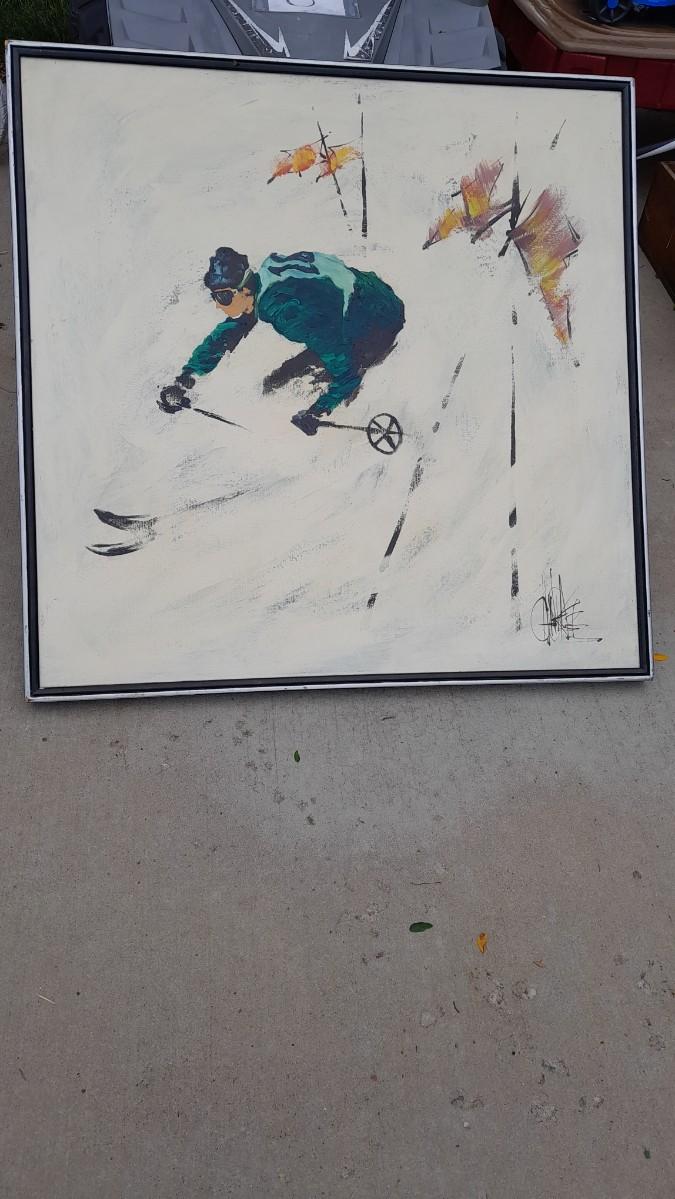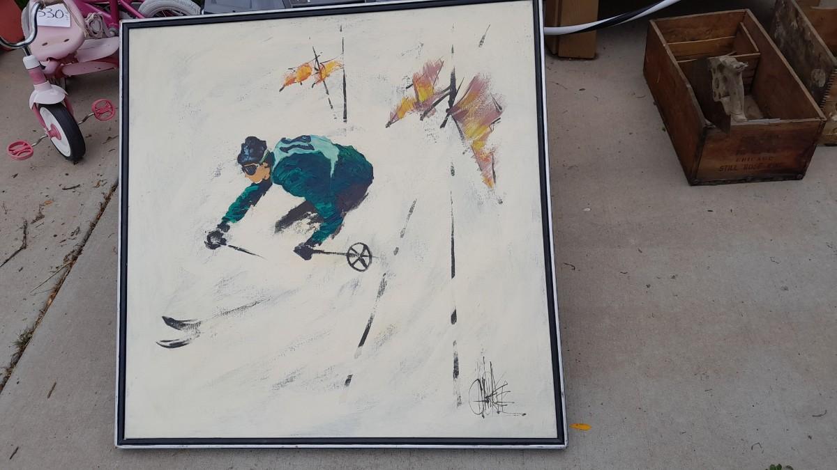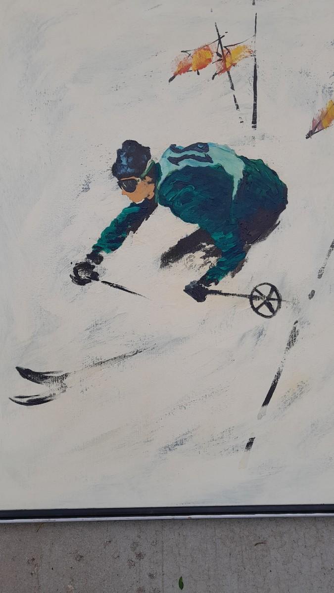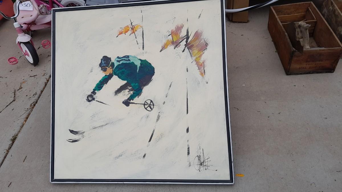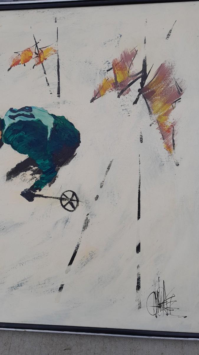 LOT 287 LARGE 37" SKIING CANVAS SIGNED ARTWORK (WS)