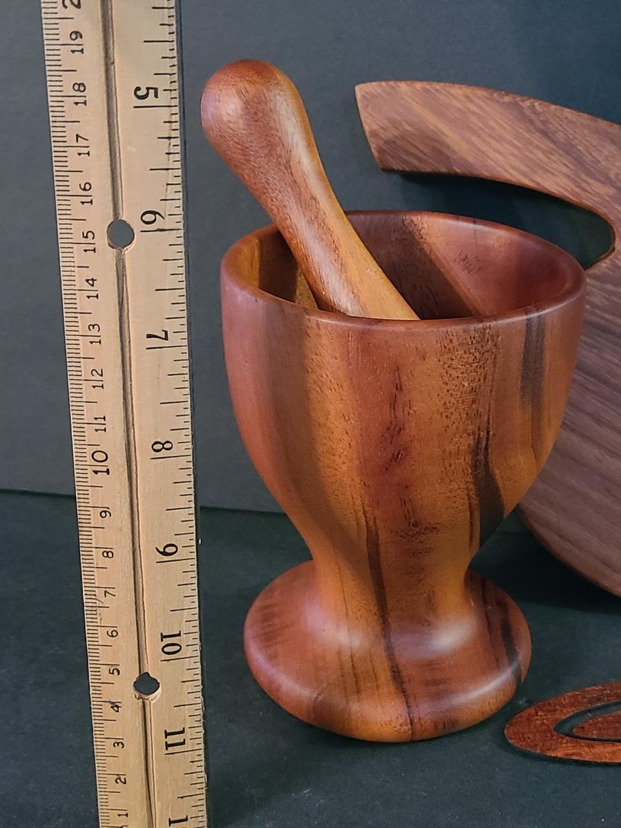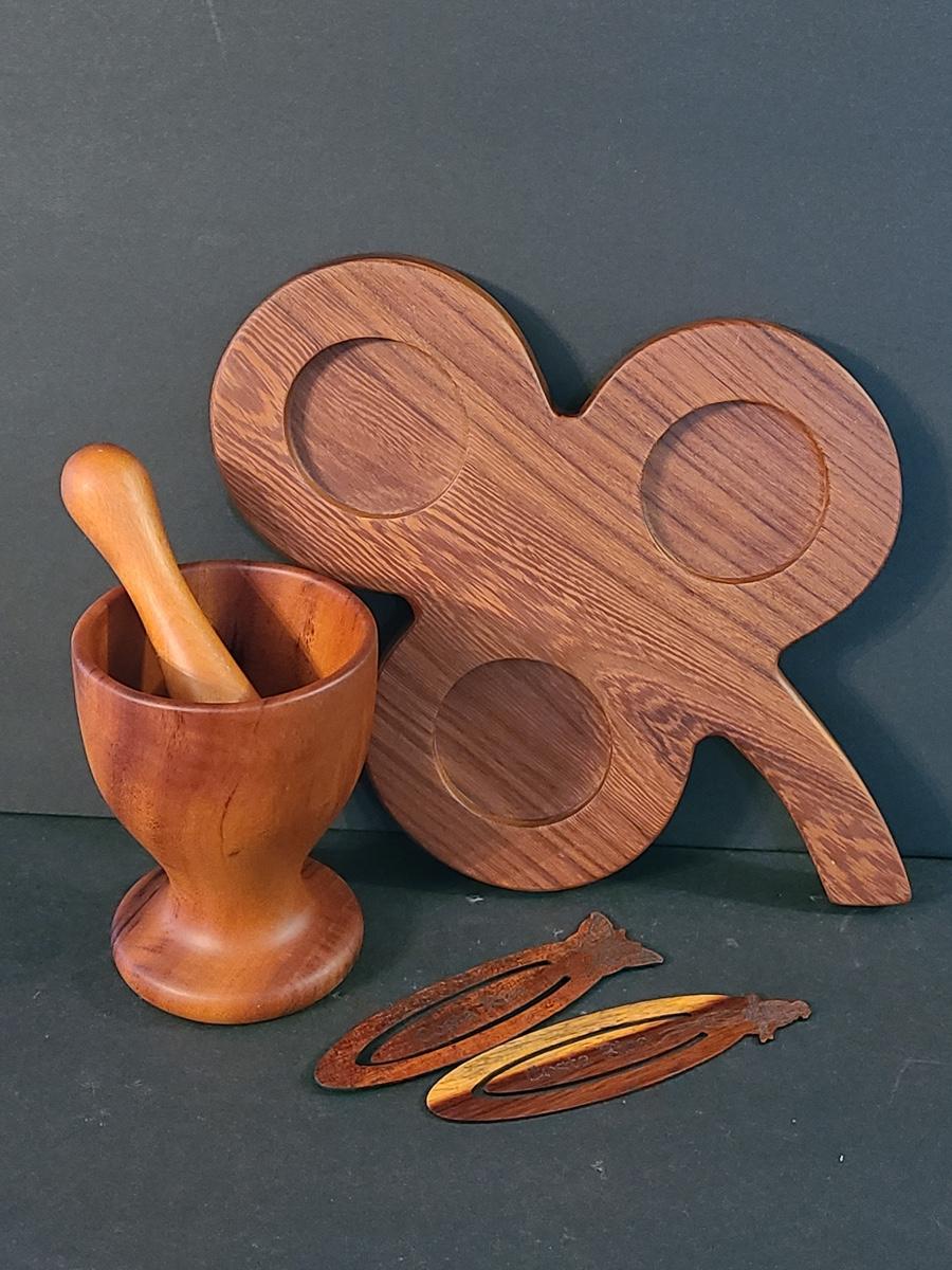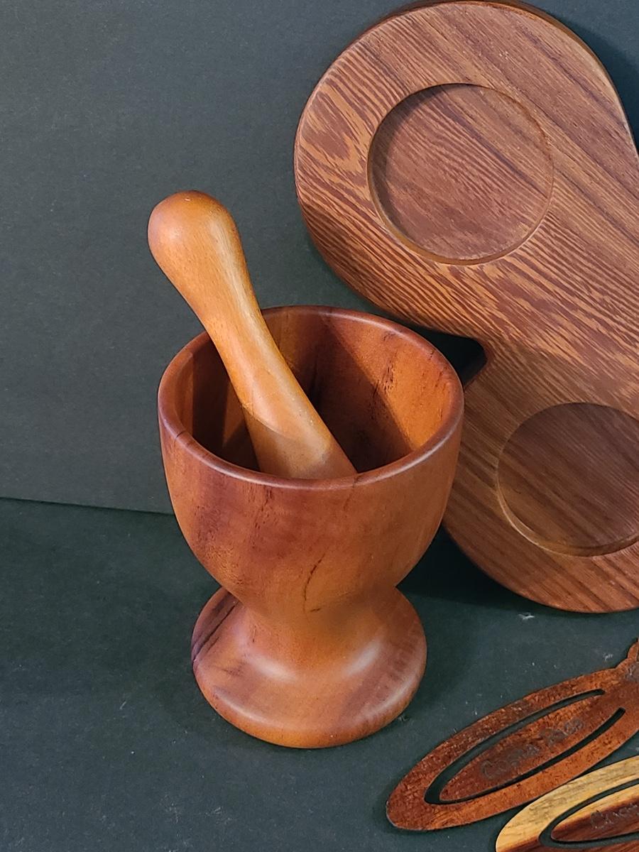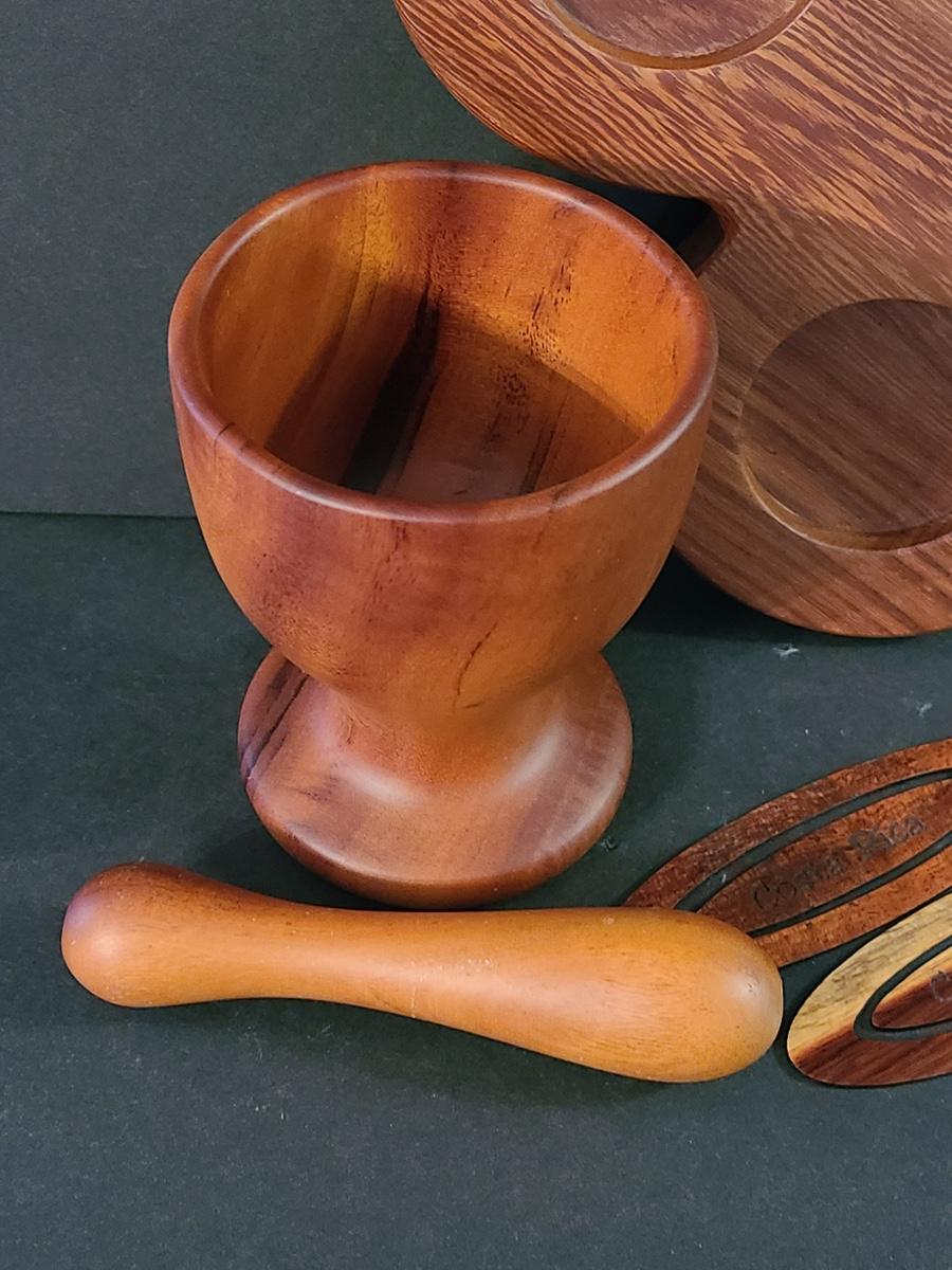 Lot 287: Wood Turned Mortar & Pestle, and Cutting Board.