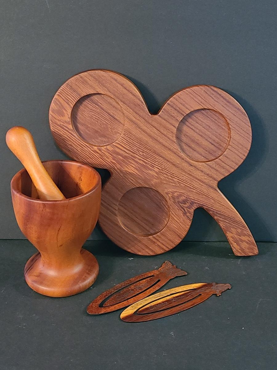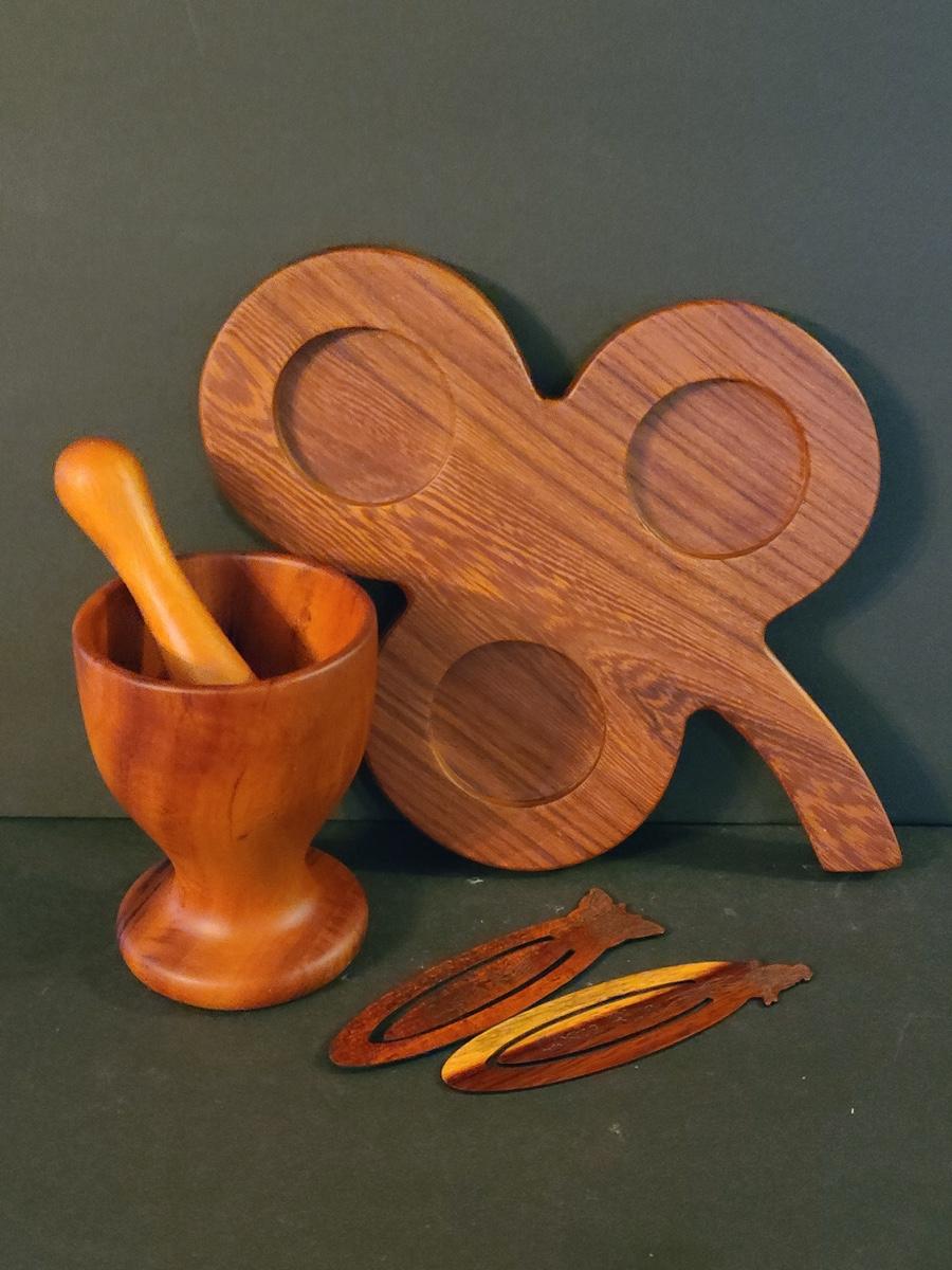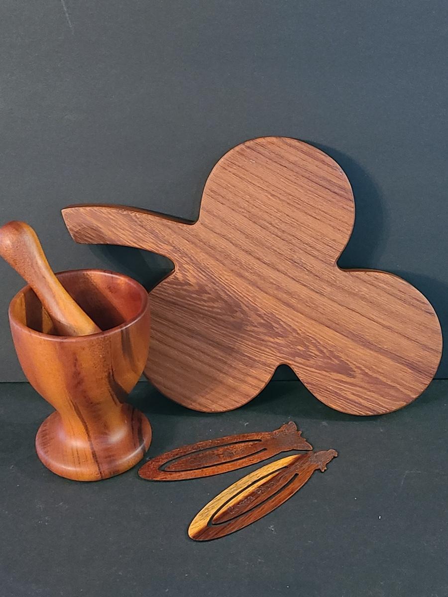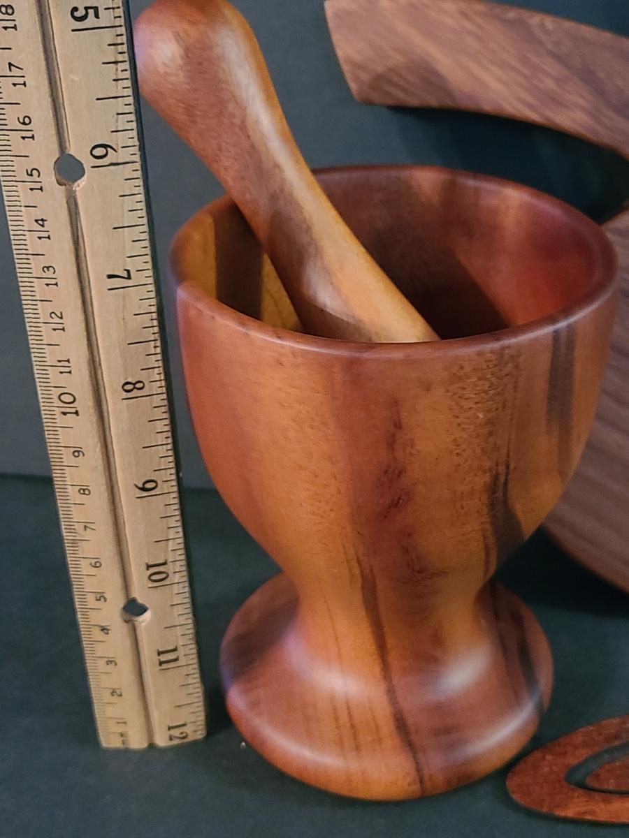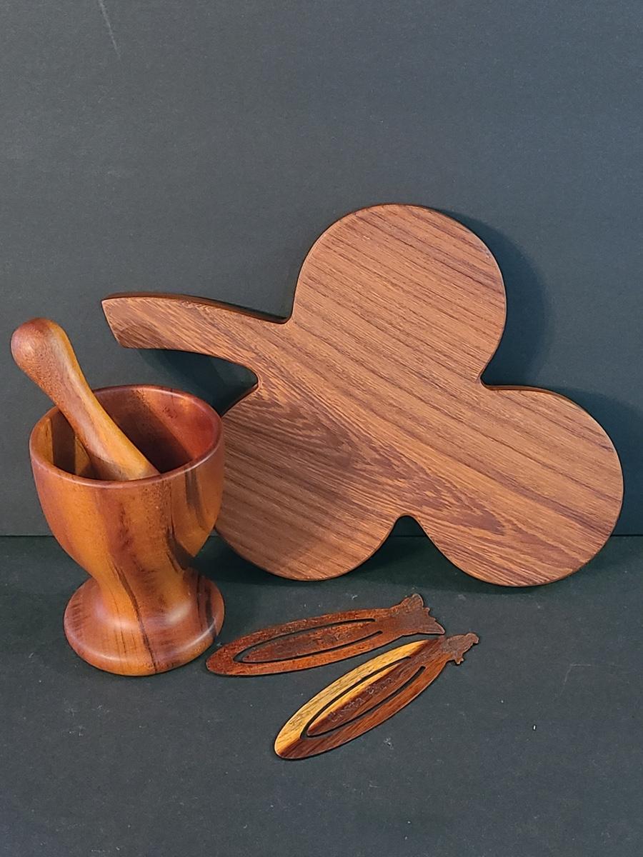 Lot 287: Wood Turned Mortar & Pestle, and Cutting Board.