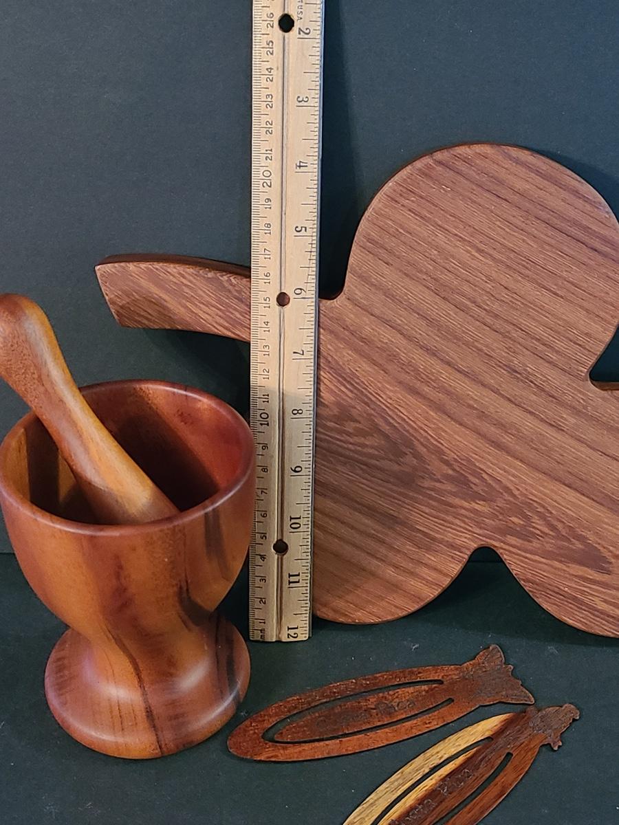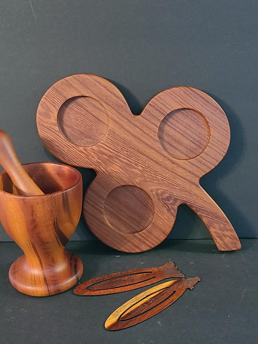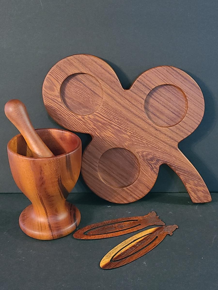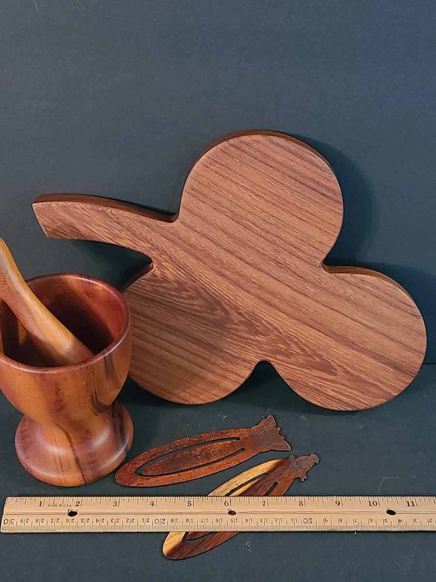 Lot 287: Wood Turned Mortar & Pestle, and Cutting Board.