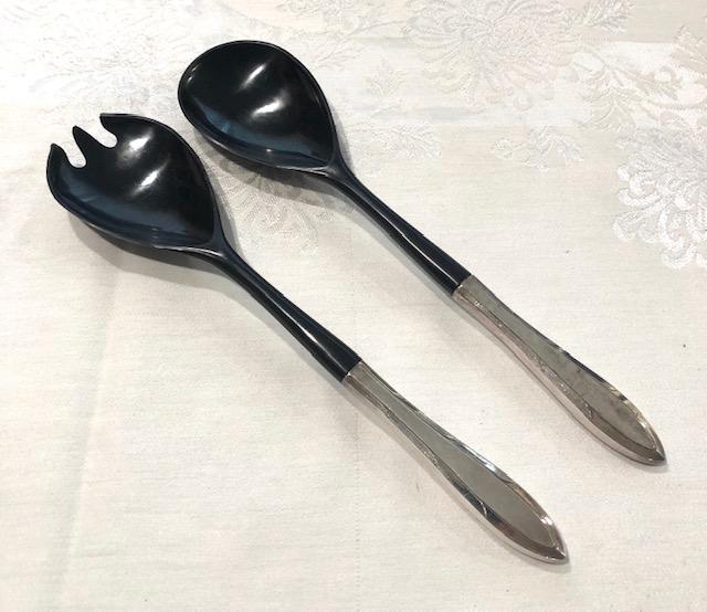 LOT 287 Salad Serving Set Fork & Spoon Plastic & Silver Handles