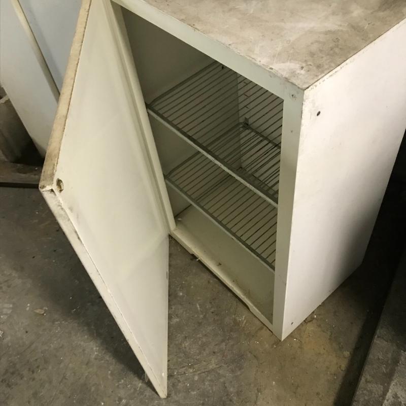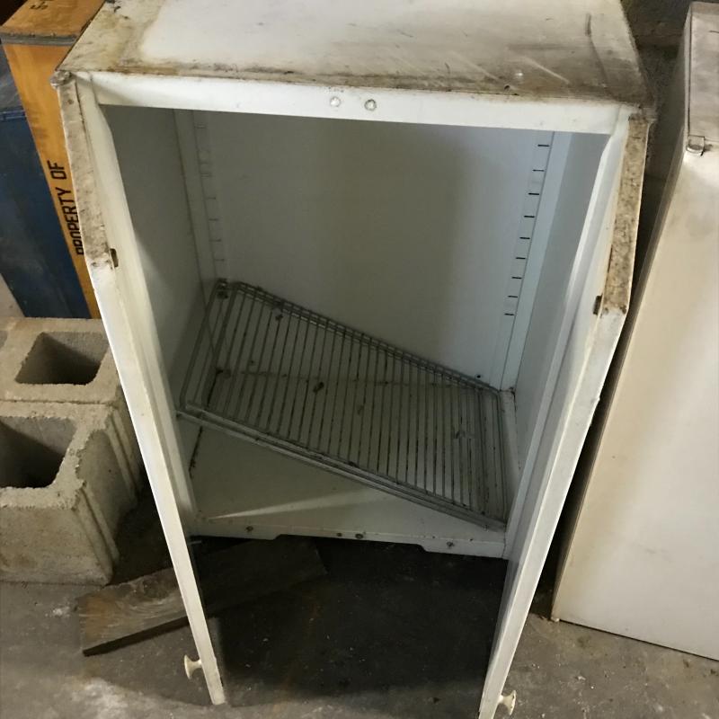 These two vintage metal cabinets are approx. 21” x 13” x 30” and 18” x 13” x 30”. Dirty but sturdy and close well. No shipping available. Local pickup only in Asheville, NC.