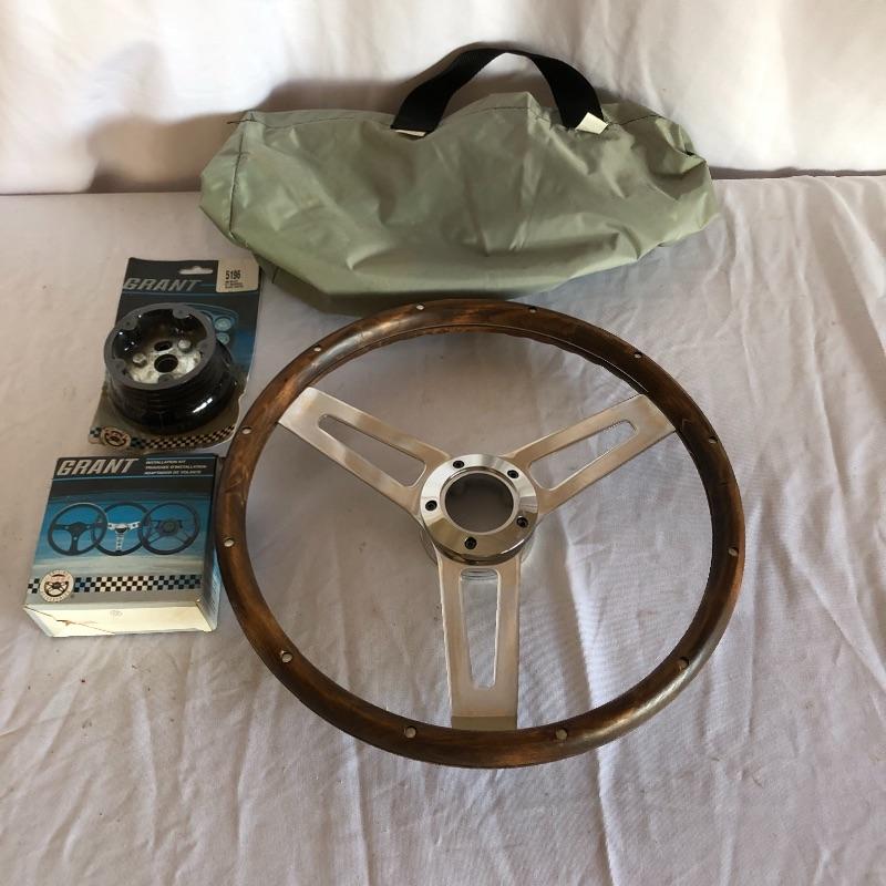 Add some style to your car with this 14” classic walnut three spoke wheel. Also includes Grant install kit model #3196 and billet spacer model #5196, steering wheel bag and a fan relay part # 30103.