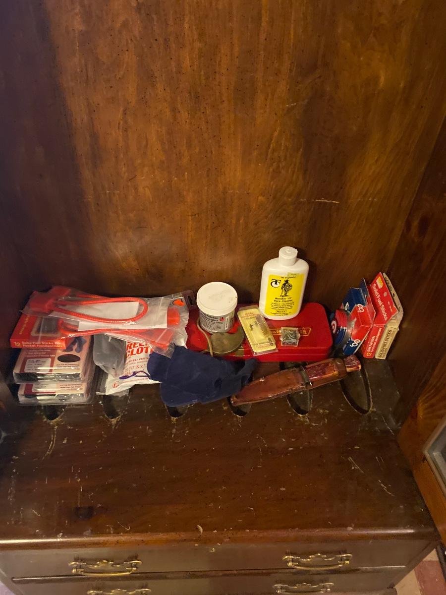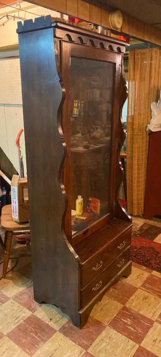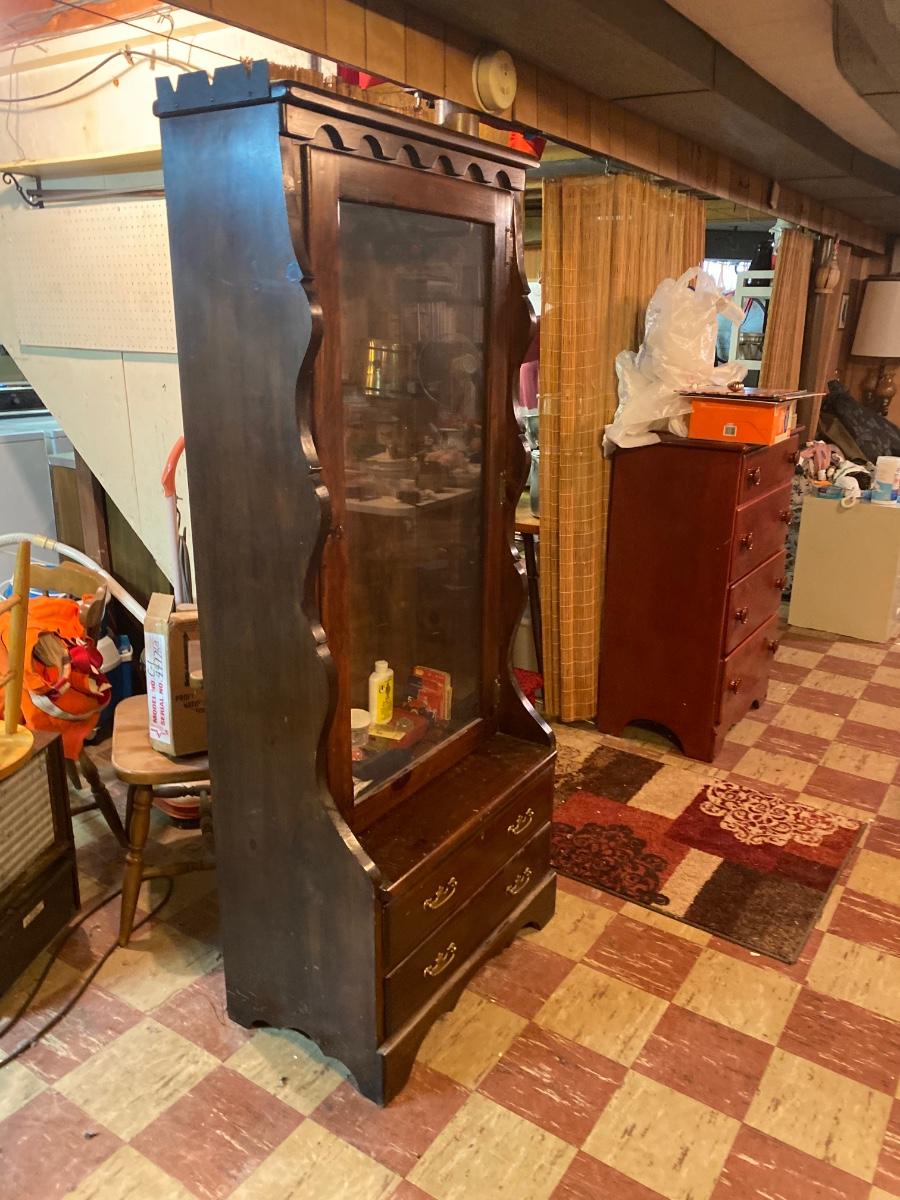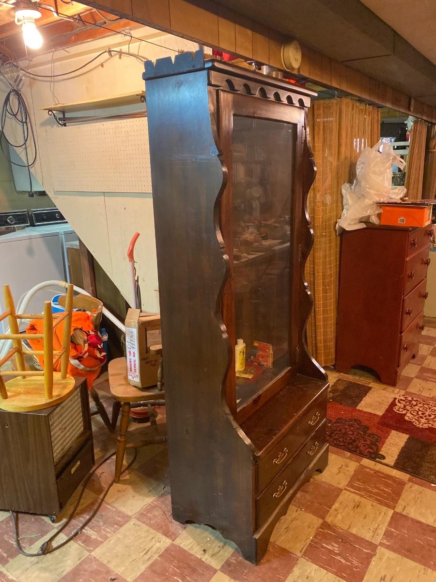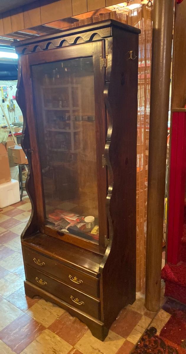 Large wood gun case with glass front door. Lot includes contents inside case. Please see all pictures as they are the best representation of the items. The pictures show condition, measurements if taken, and what is included in the lot. Due to the large amount that we photograph and the time frame, we are not always able to take measurements. All items unless noted, are pre-owned and have been used. If you purchased furniture, you must bring help. We do not allow one person to carry large furniture out on their own. Bring help, tools and a truck for the safety of our client’s homes, and your personal safety. Any damages that result to the property including walls, and floors due to moving of the furniture will be charged to the buyer. Company policy. Thank you