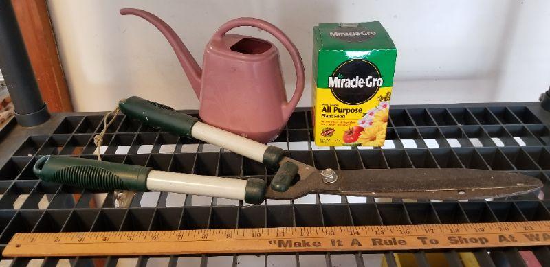 LOT #288: Garden Bundle - Shears. MIRACLE GRO (75%) and Small Watering Can