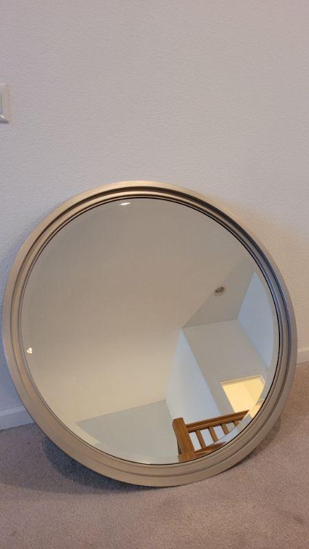 Lot 288: Large 41" Silver Trim Beveled Glass Showcase Round Mirror