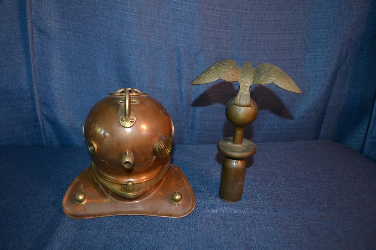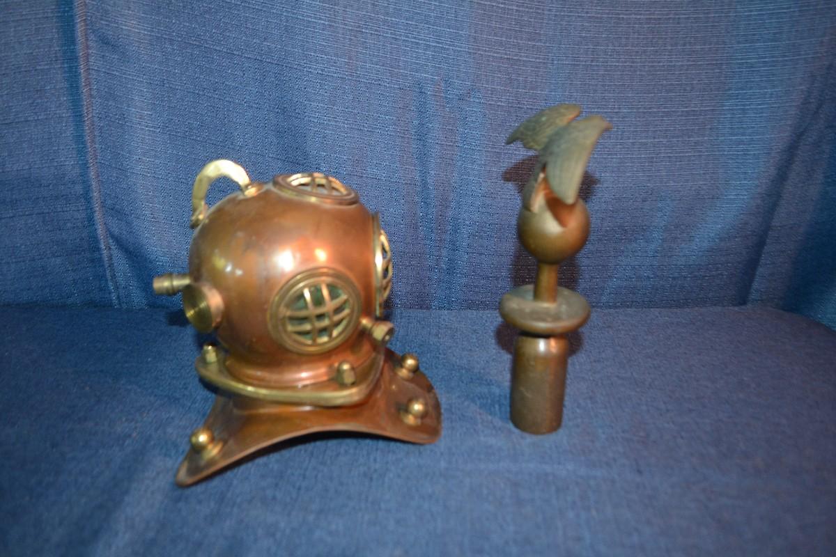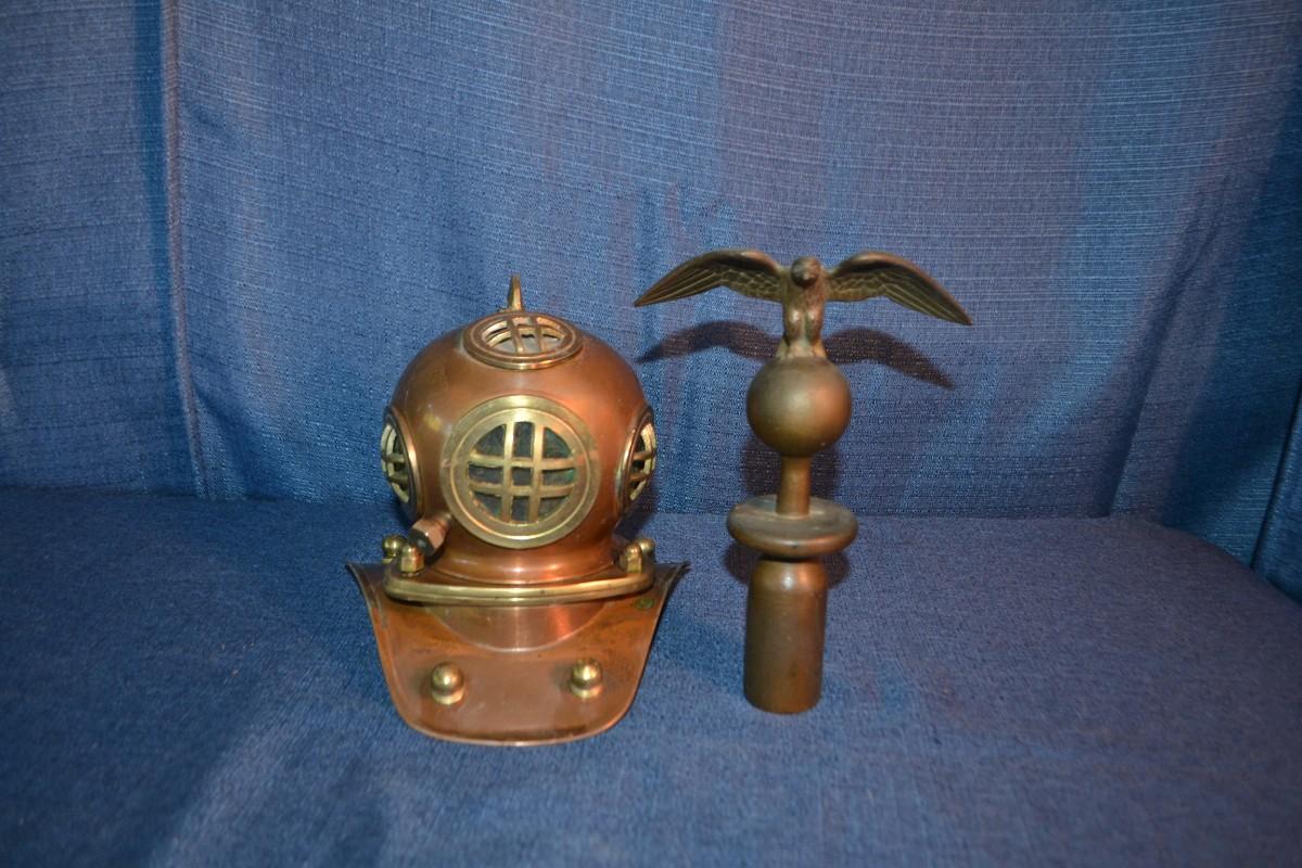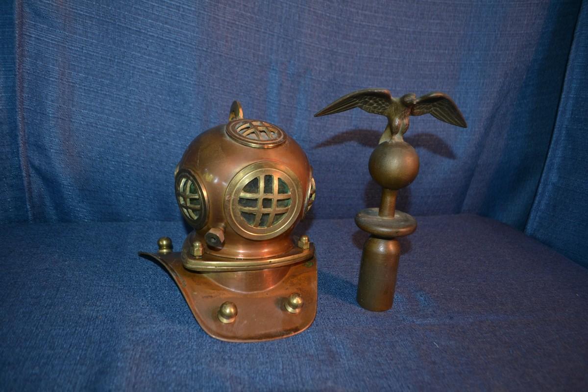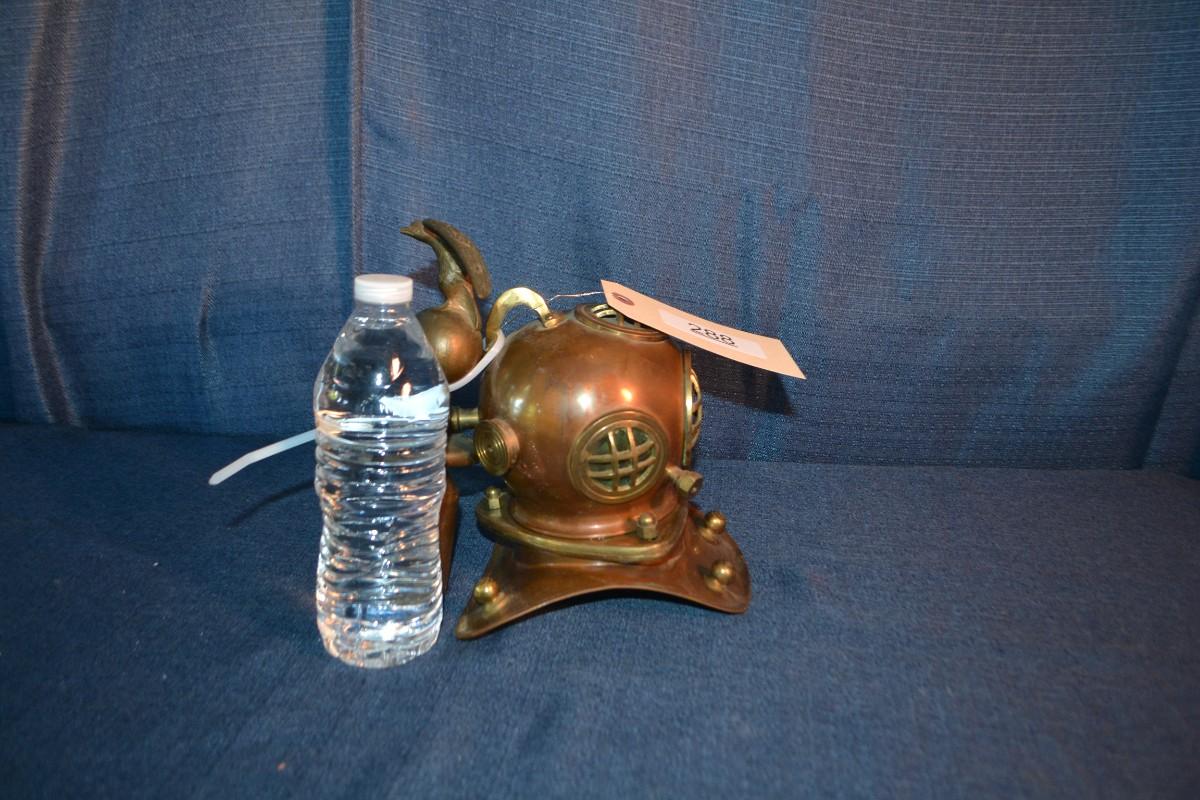 LOT 288 BRASS ITEMS MINI DECORATIVE DIVER HELMET AND EAGLE