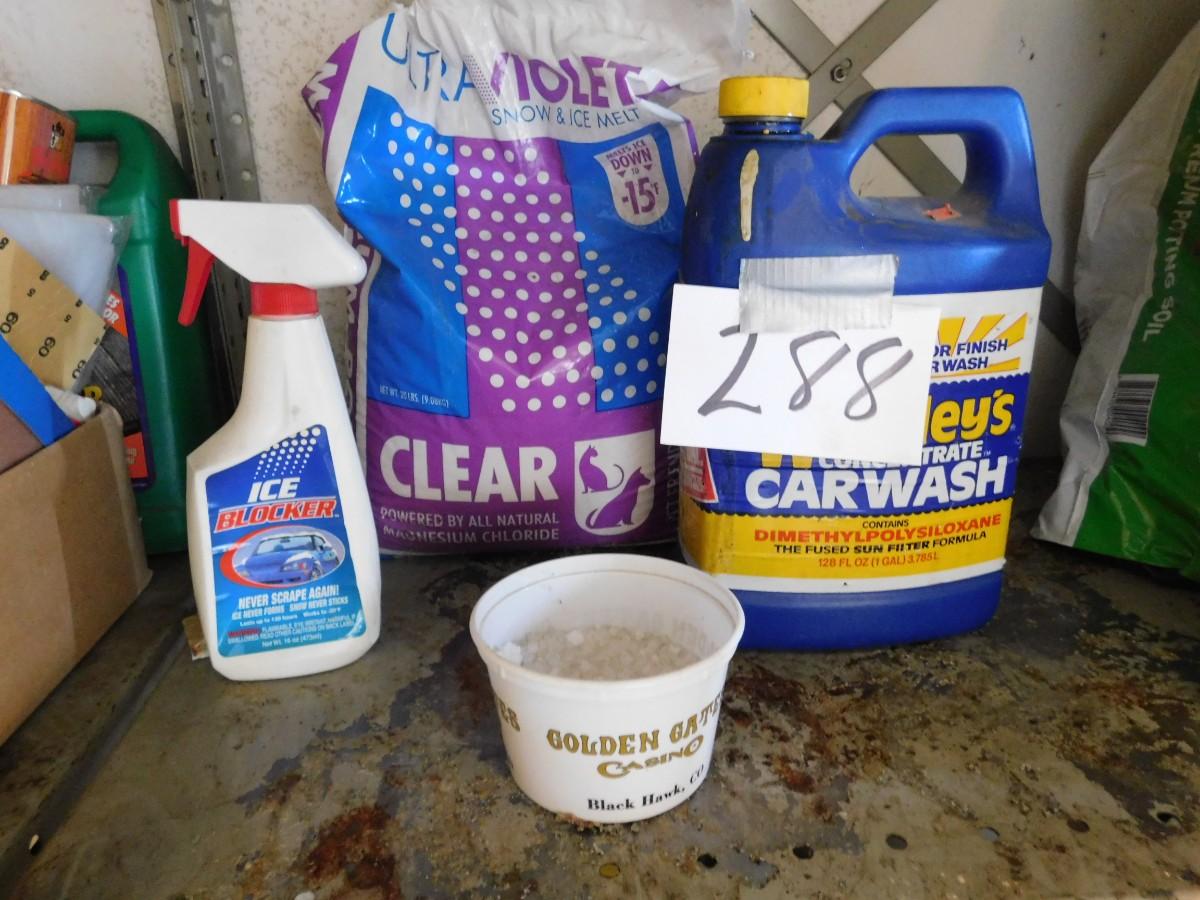 LOT 288 BAG OF ICE MELT, ICE CLOCKER SPRAY, AND CONCRETE/DRIVEWAY WASH