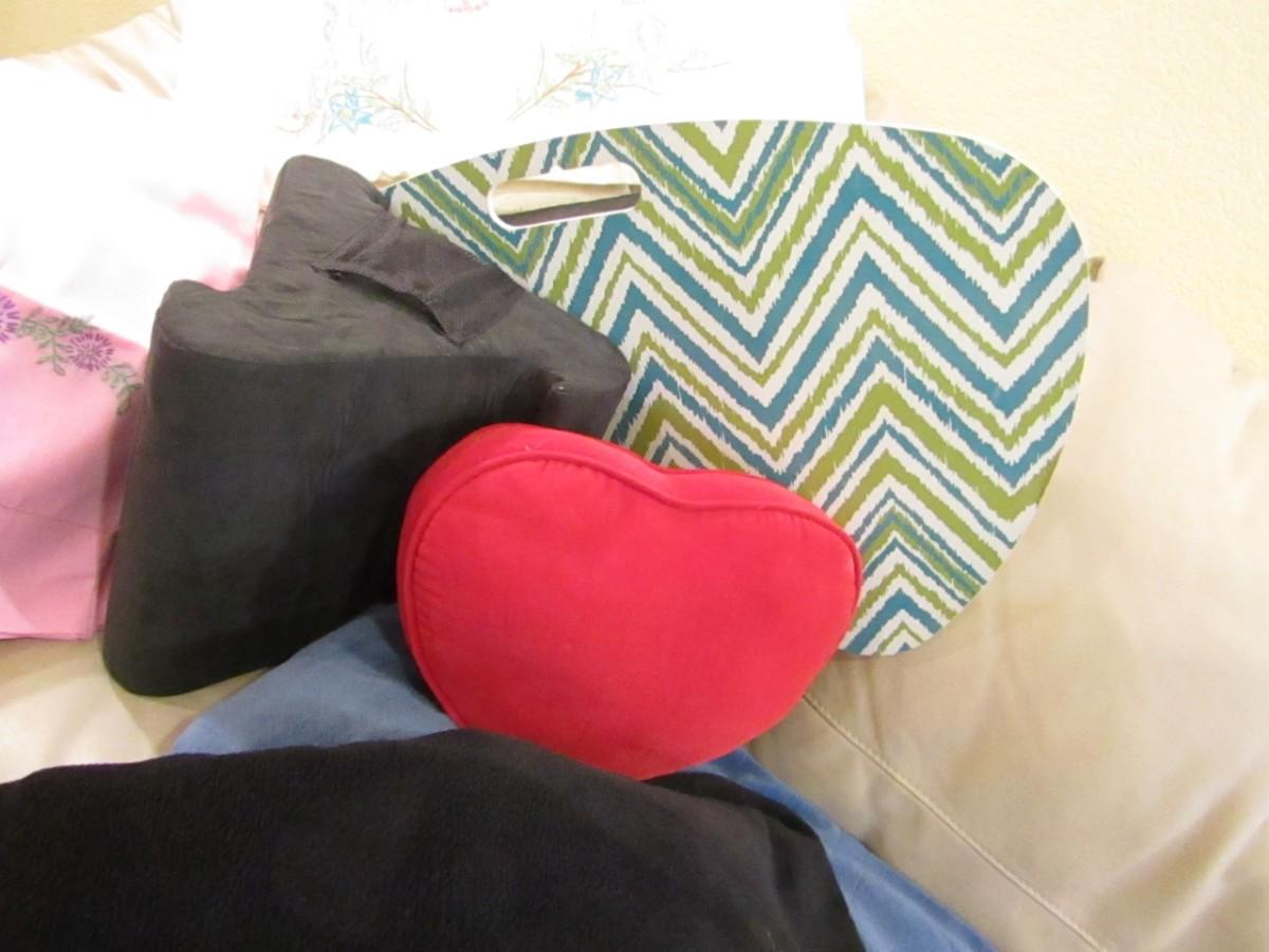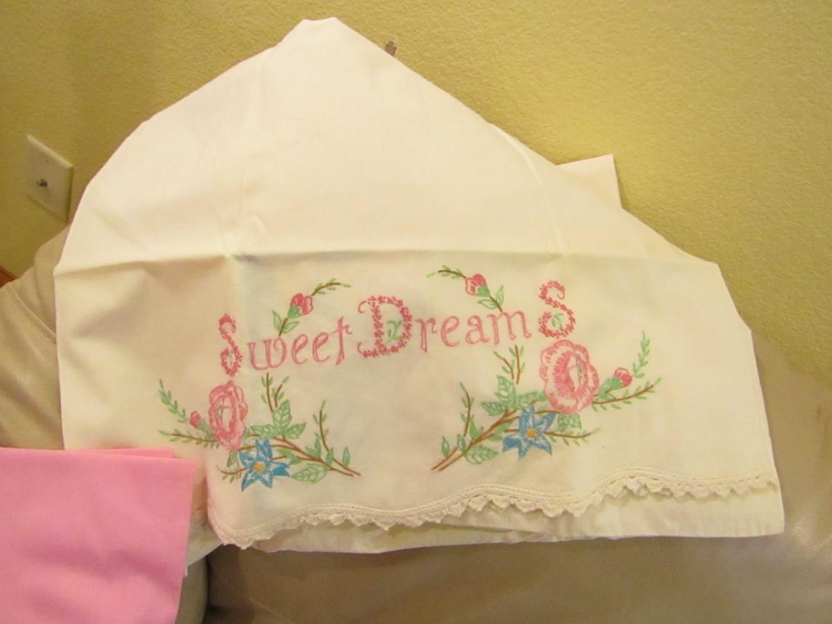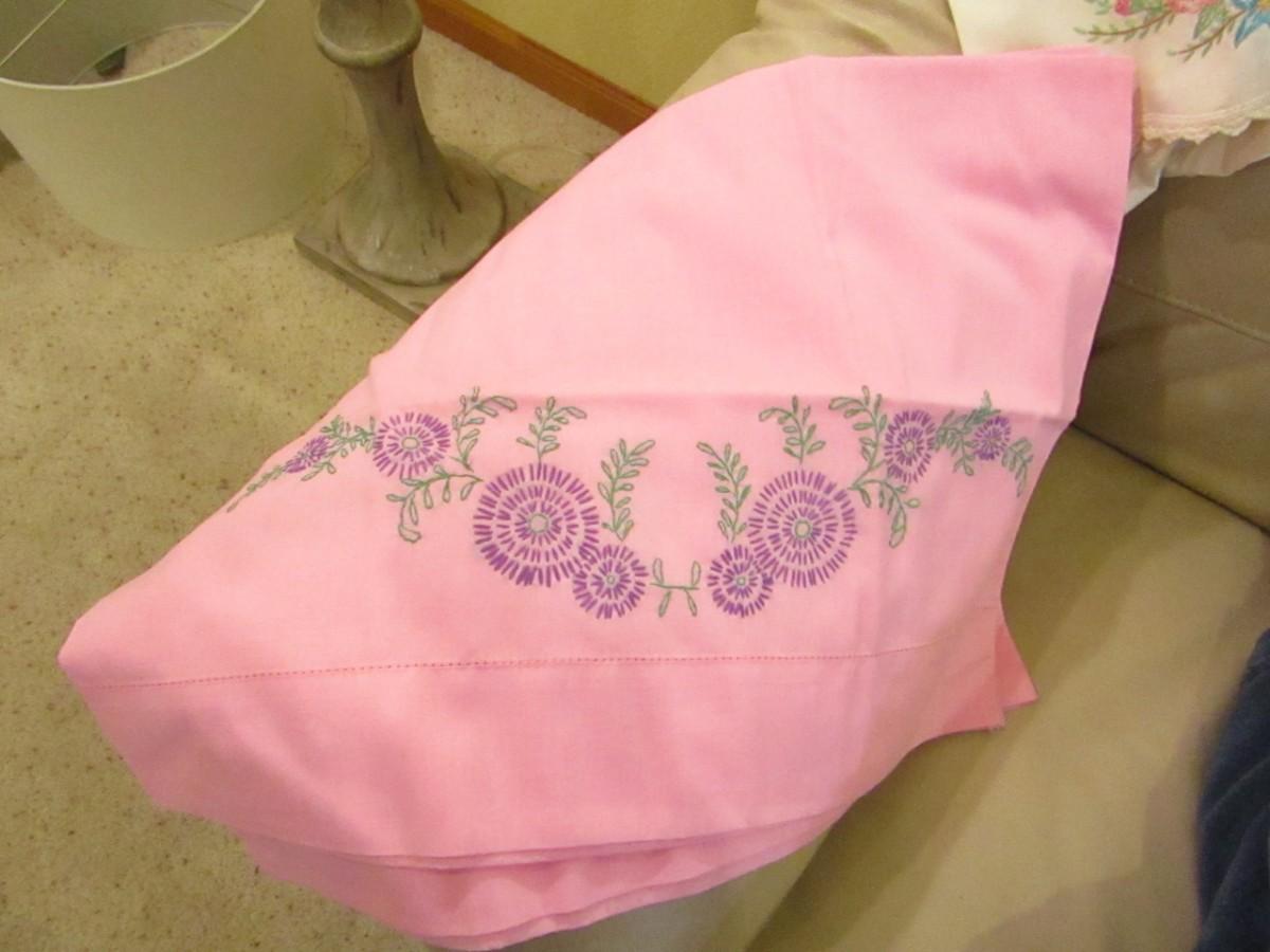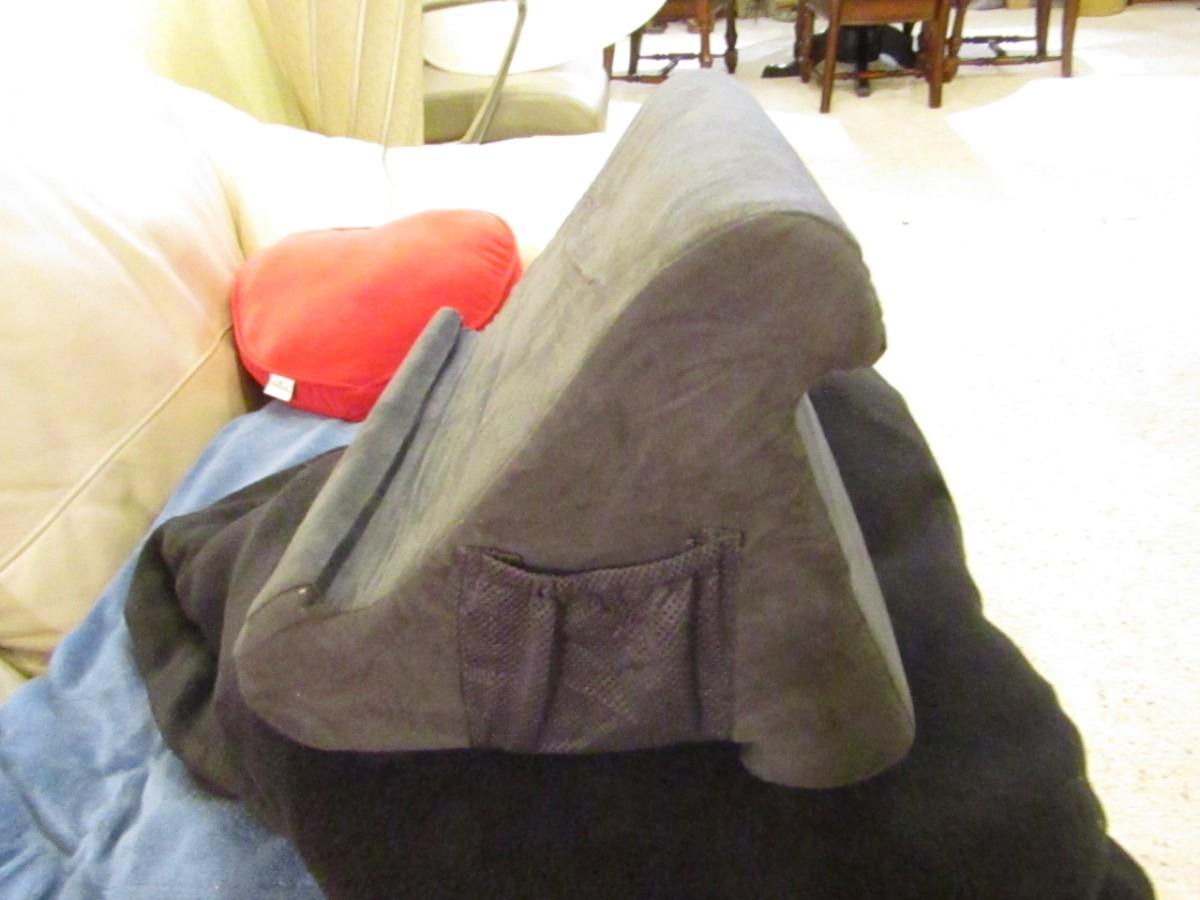2 SETS OF HAND EMBROIDERED PILLOWCASES, ONE SIZE FITS ALL BATHROBE, HEART SHAPED PILLOW, DENVER THROW BLANKET AND AN ELECTRIC BLANKET MISSING ITS CORD, LAP TABLE