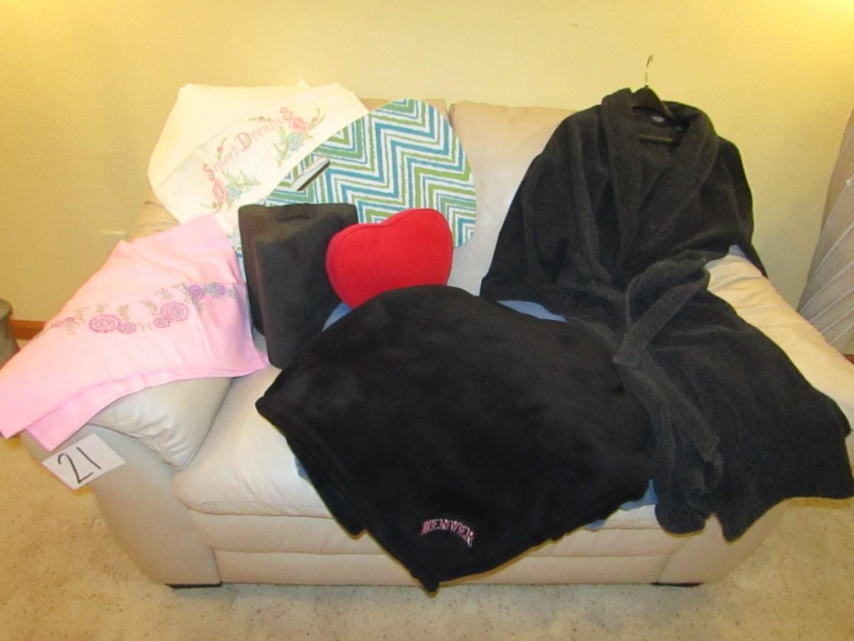 LOT 288 BATHROBE, BLANKETS, PILLOWCASES AND MORE