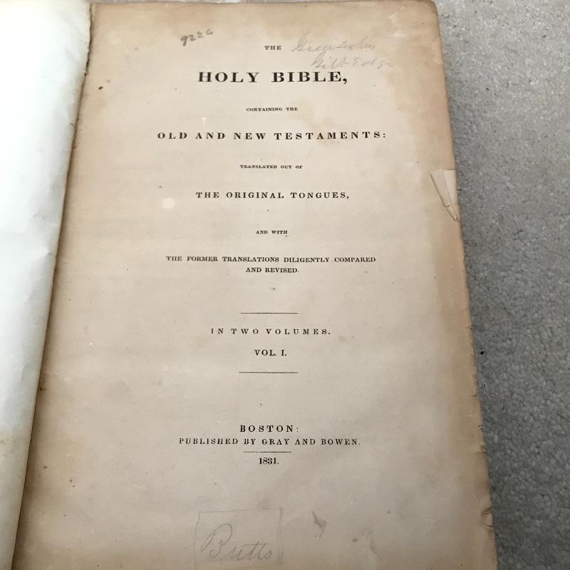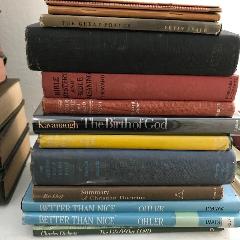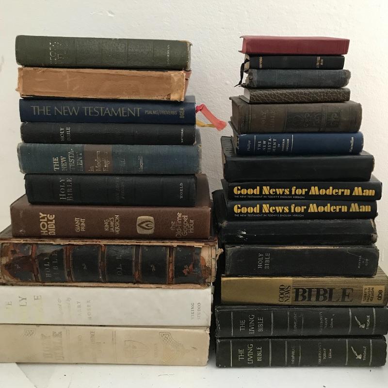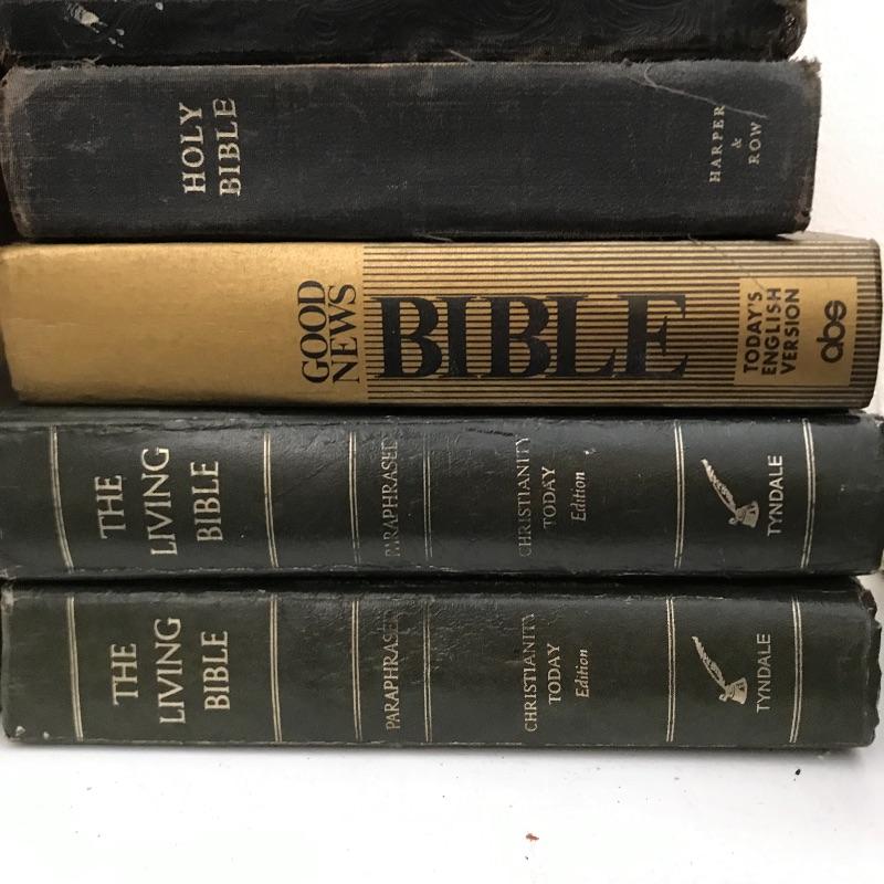 This lot of books includes many Bibles and biblical commentaries. One Bible was printed in 1831. See pics. Local pickup only.