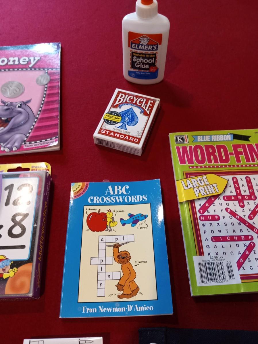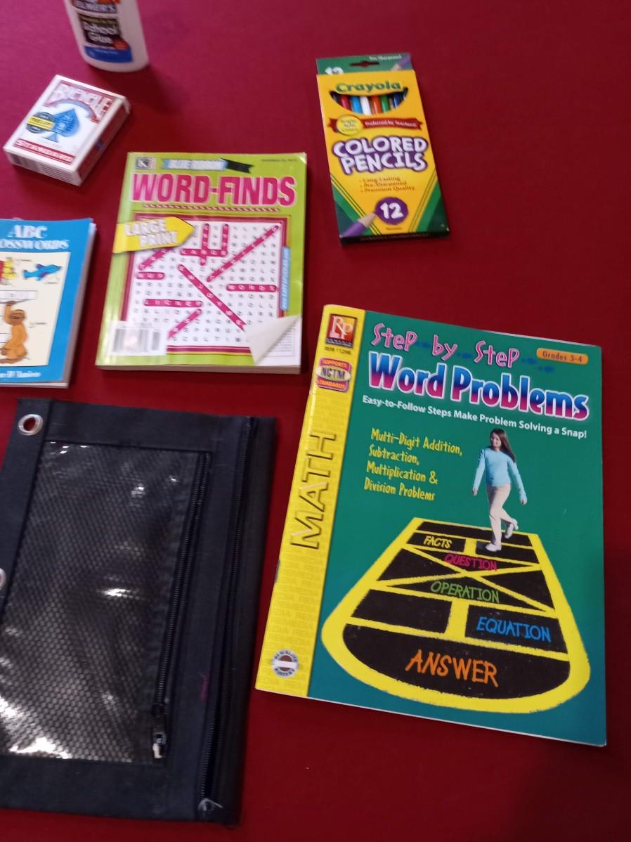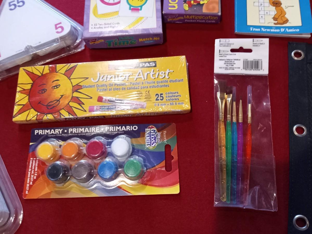 LOT 288 EDUCATIONAL GAMES, BOOKS, PAINTS, COLORED PENCILS ETC