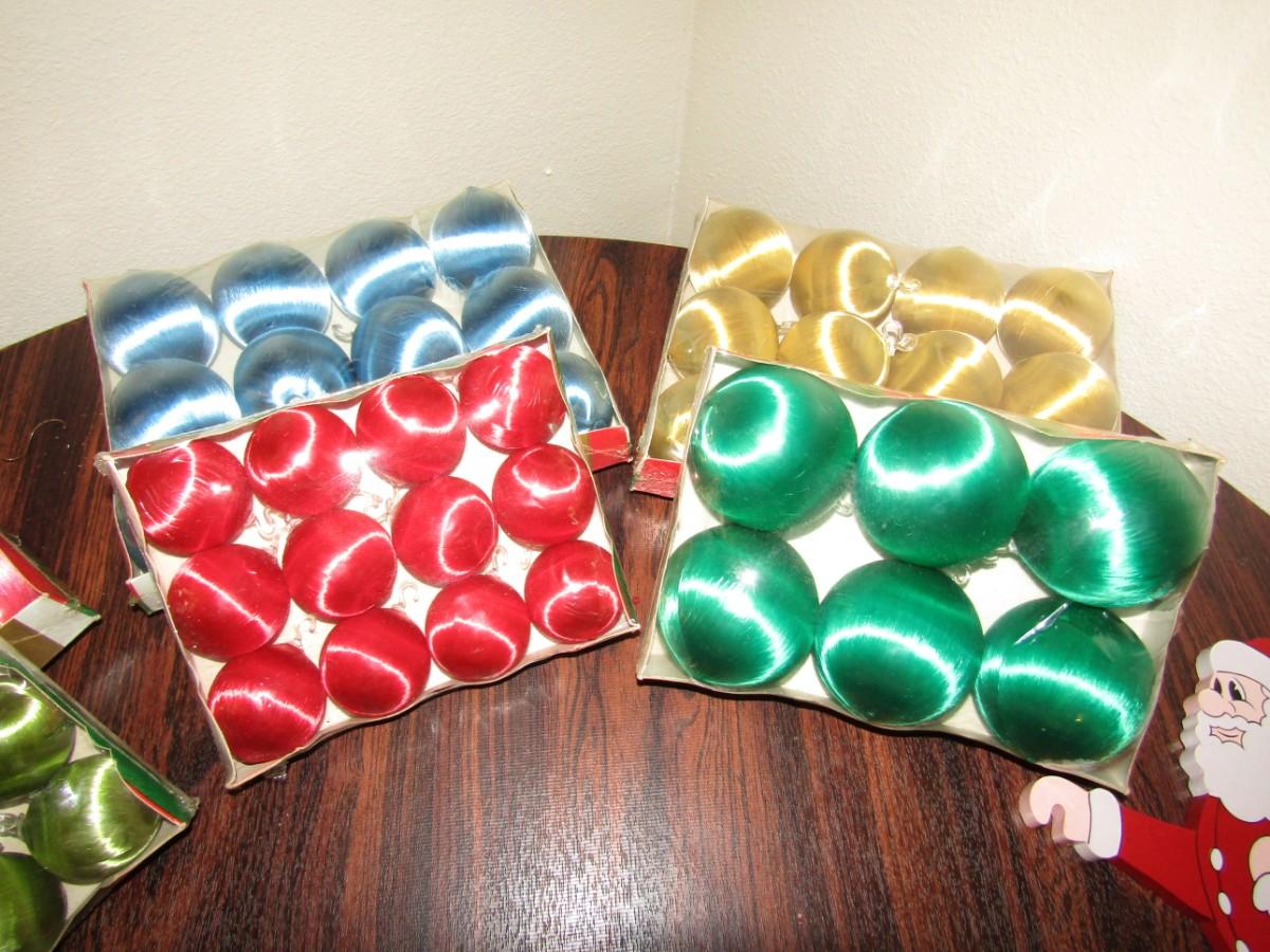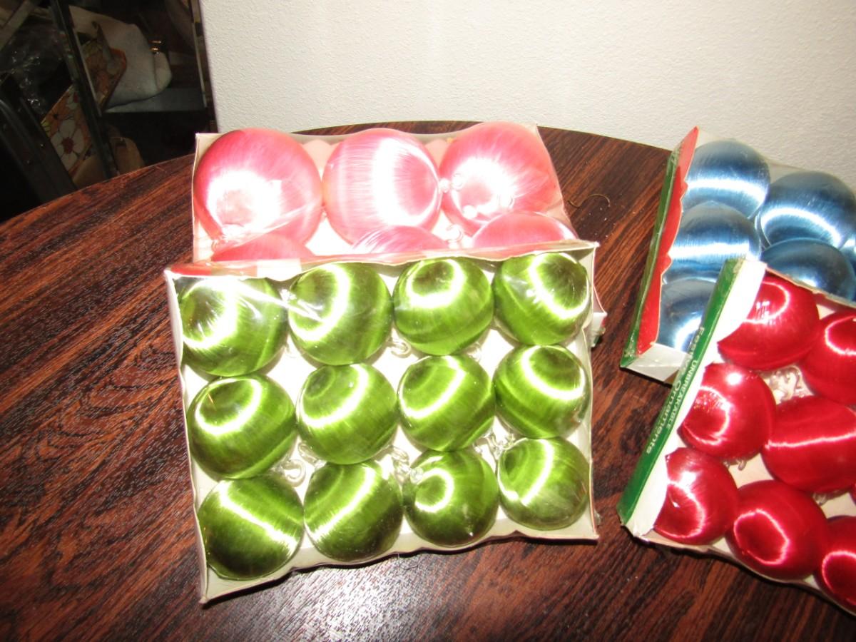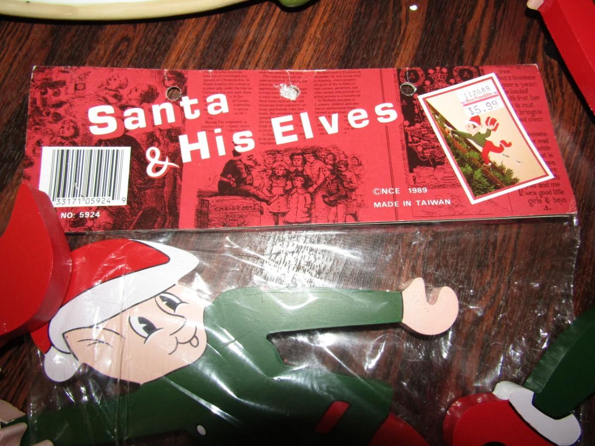 NEW PACKAGES OF SANTA & HIS ELVES, CHRISTMAS BULBS IN GREEN, RED, PINK, BLUE AND YELLOW. SERVING PLATTER