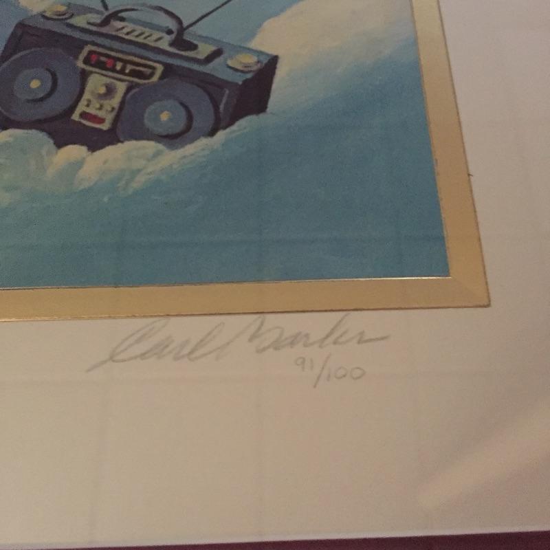 This Lithograph is signed with the number 91 of 100 and has a COA. Frame is white with blue Matt.