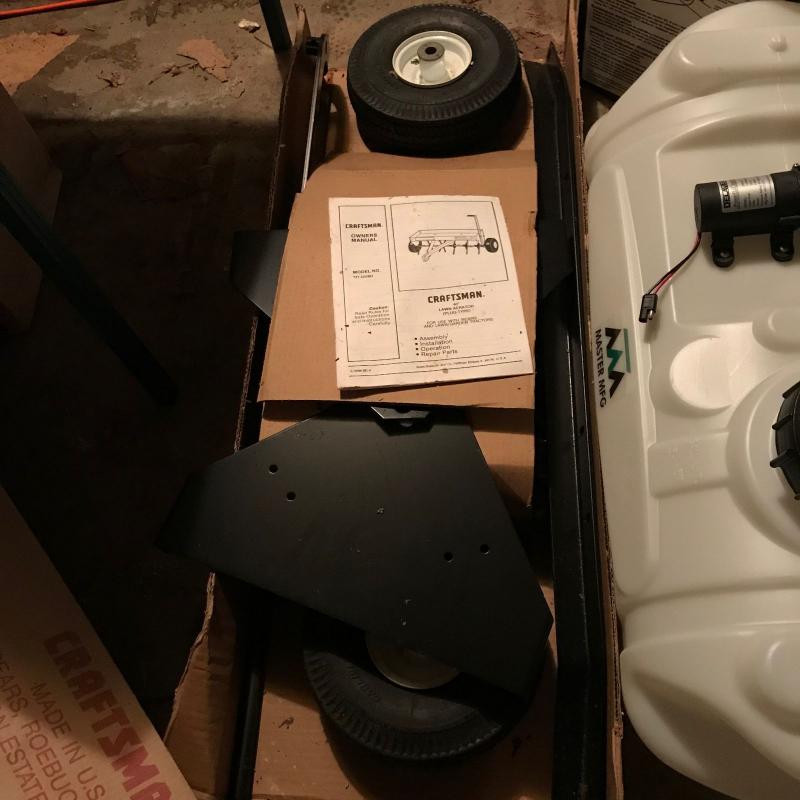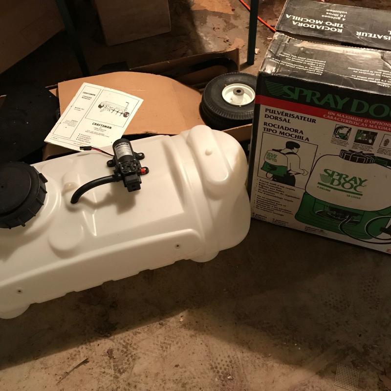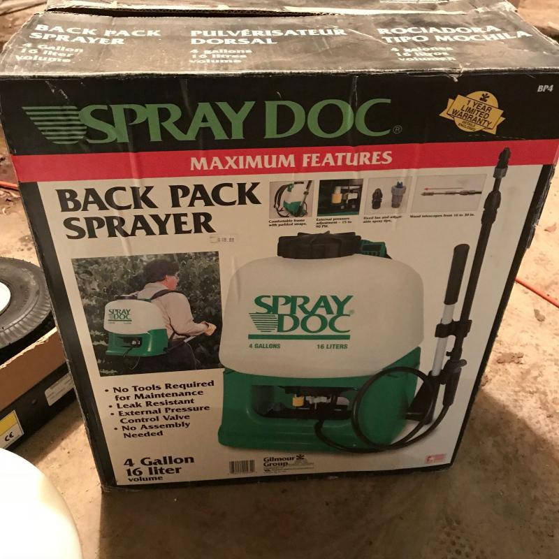 New in box tiller and back pack sprayer. Also includes Delavan Power Flo Diaphragm Pump on 15 Gallon Tank. Model 2200. No shipping. Local Pick up only