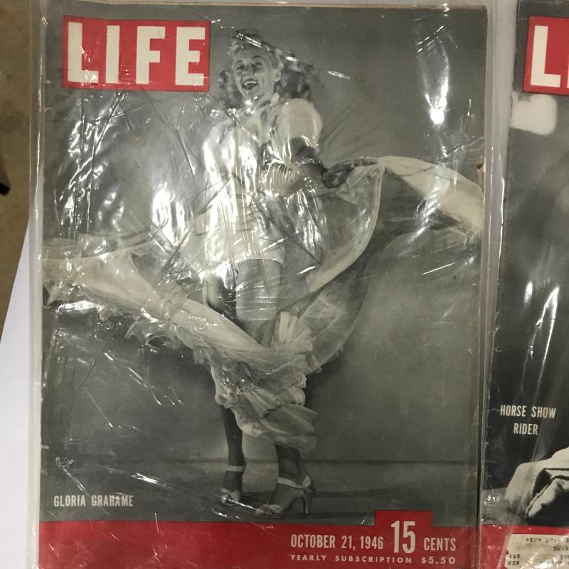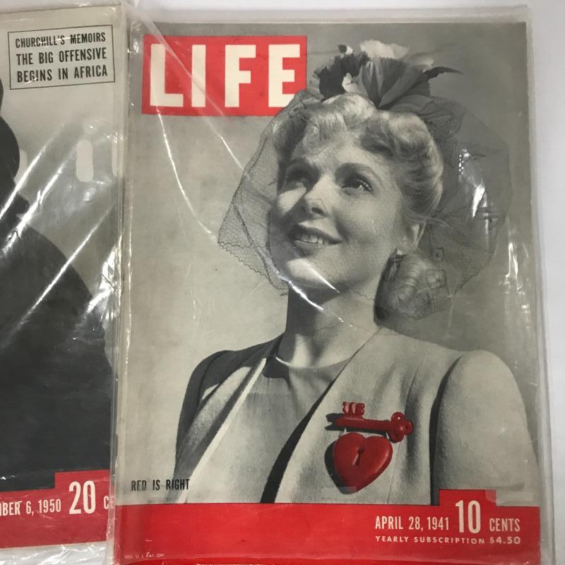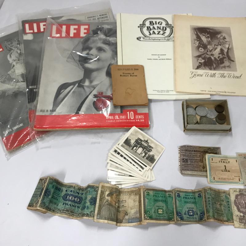 Three Vintage Life Magazines. Some international coins, Victorian photo mount and paper money. See photos for details. Shipping or local pick up in Asheville