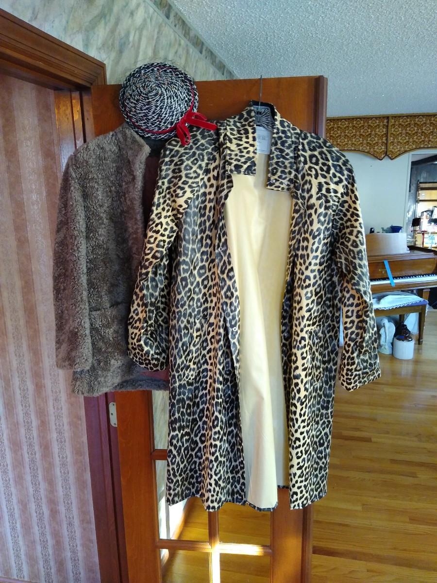 LOT 288H: Vintage AMKNITS Vinyl Leopard Print Trenchcoat, Vintage Hat & More