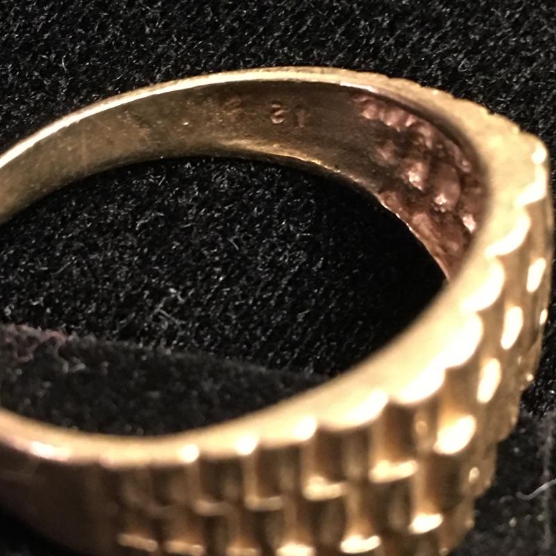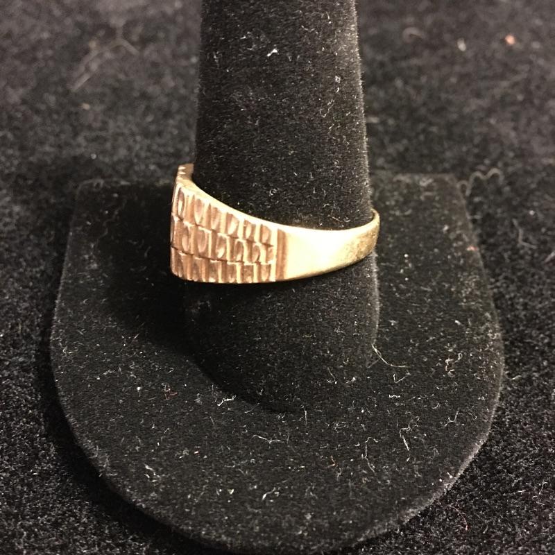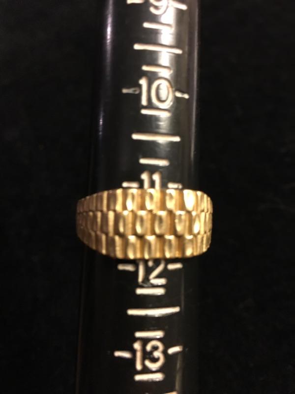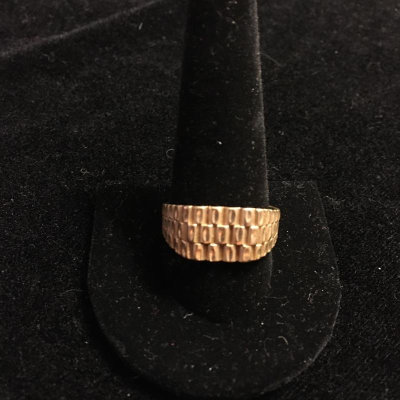 10K gold ring with link like pattern. Ring is marked 10K. A nice bold ring for the man in your life.
