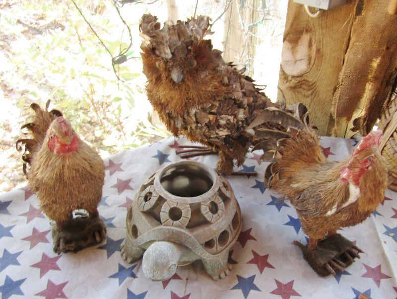 2 CHICKENS AND A TURTLE CANDLE HOLDER