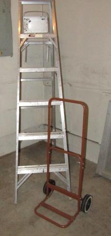 ALUMINUM 5' LADDER, SMALL DOLLY AND FOLDING YARD CART
